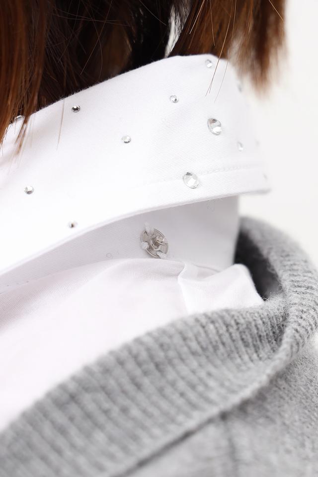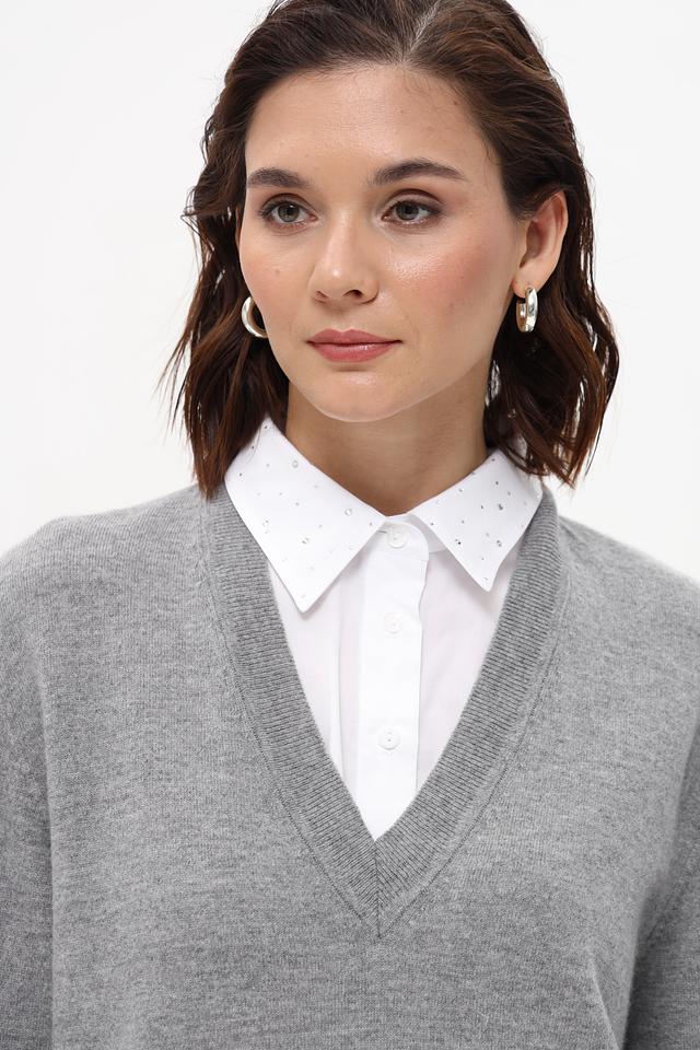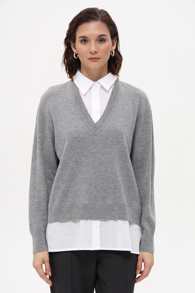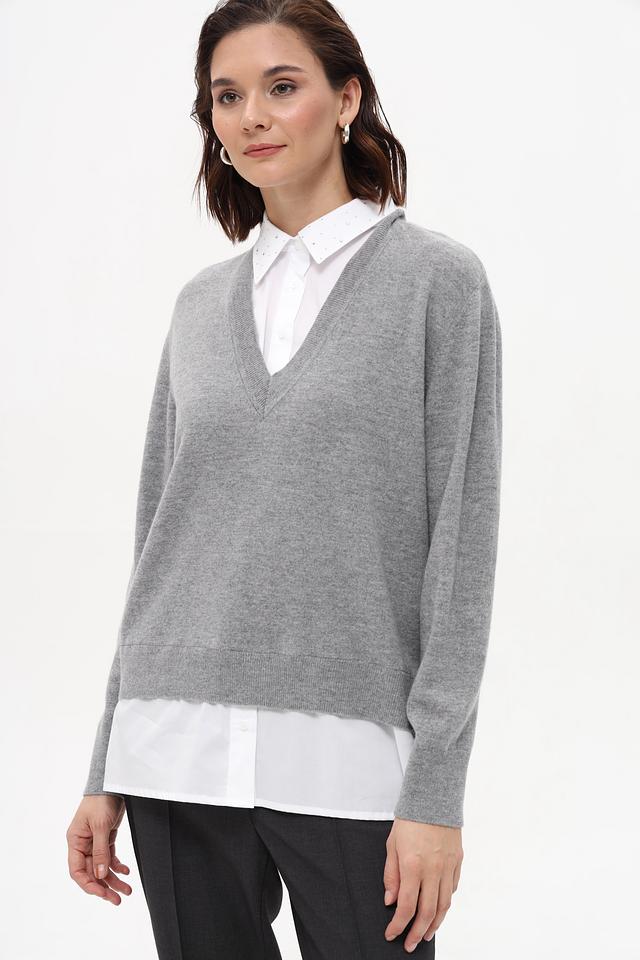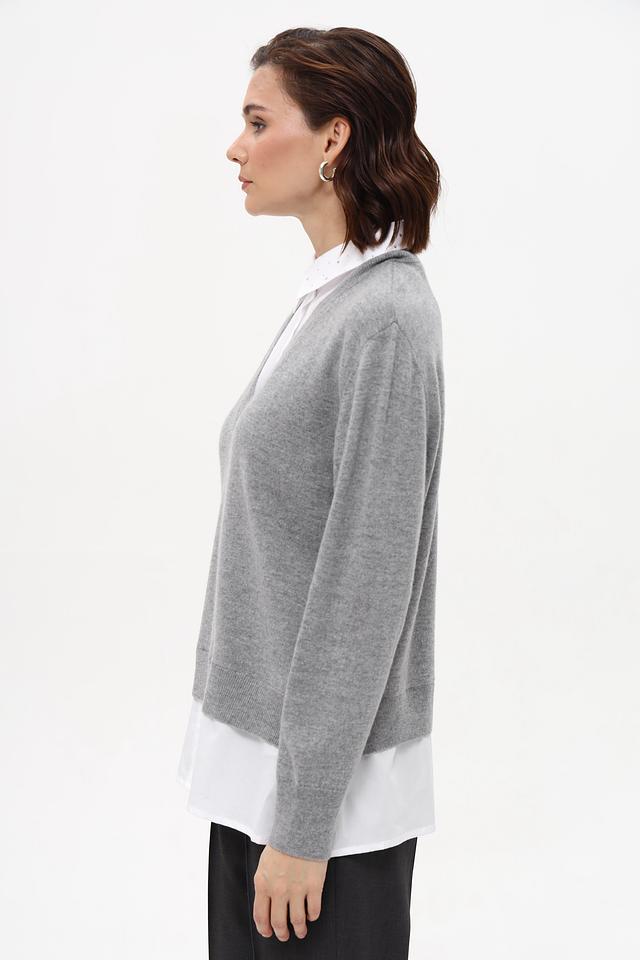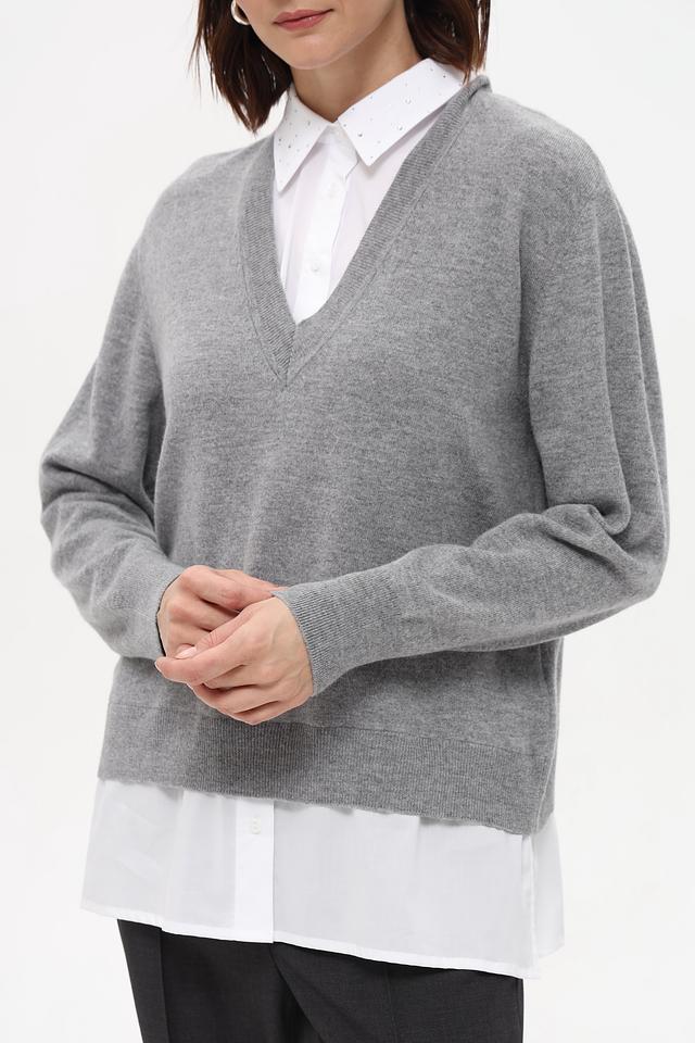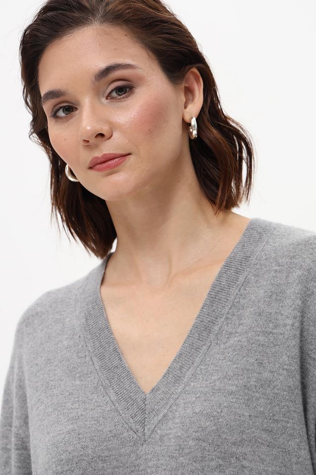 Серая блуза от Margittes с V-образным вырезом выполнена из мягкой шерсти с добавлением кашемира. Удобный крой и натуральный состав обеспечивают комфорт в носке. Состав: шерсть 90%, кашемир 10%