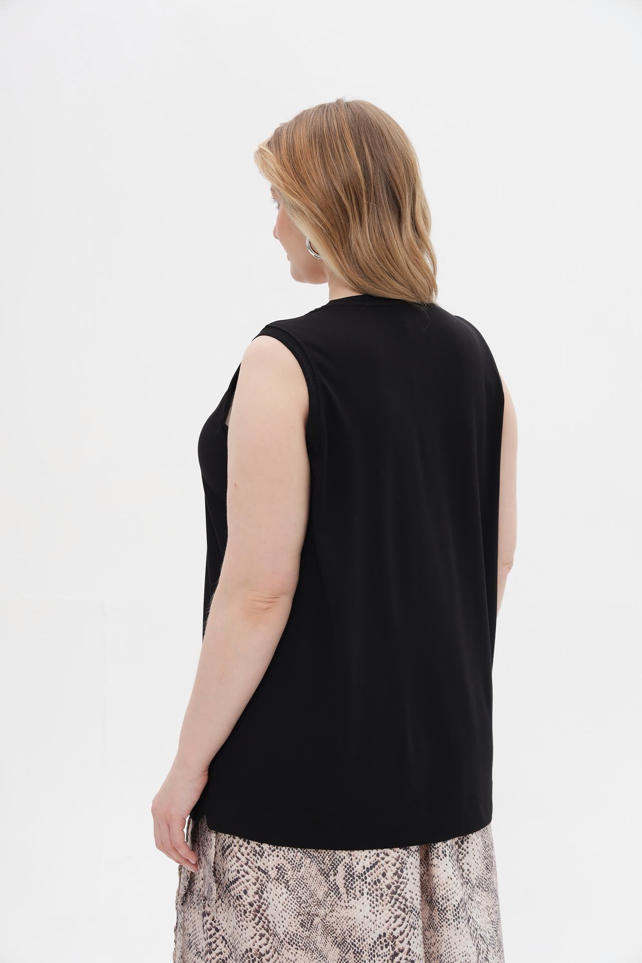 - Состав ткани: 52% хлопок, 48% вискоза. Этот натуральный состав обеспечивает исключительный комфорт, гипоаллергенность и отличную воздухопроницаемость, делая топ идеальным выбором для жаркой погоды.