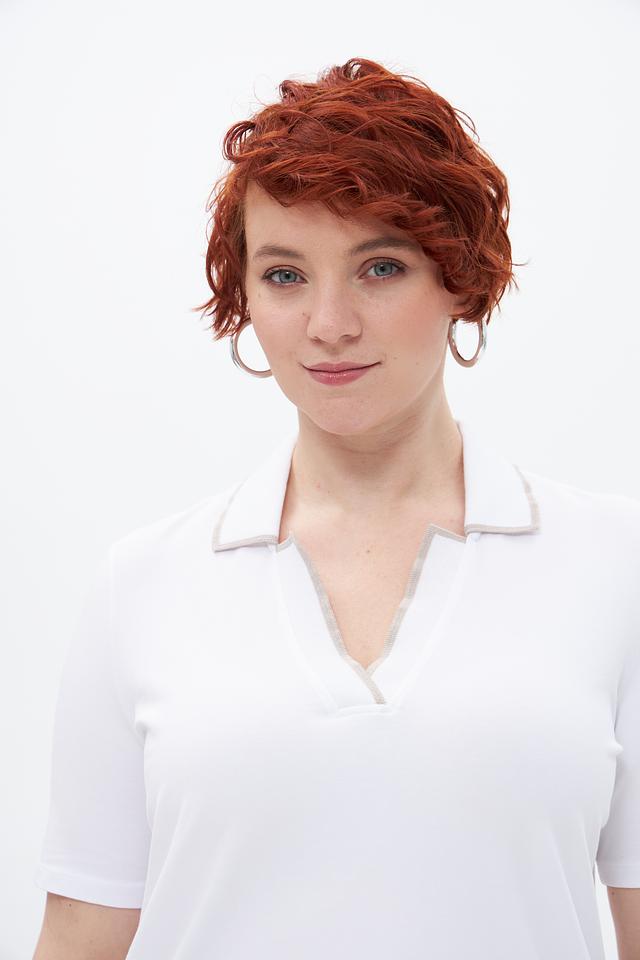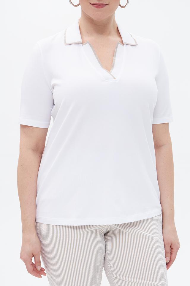 Белая блузка-поло от Margittes — это комфорт и стиль в одном изделии. Выполнена из мягкого хлопка с добавлением эластана, обеспечивающего удобную посадку. Подходит для создания повседневных образов. Состав: хлопок 96%, эластан 4%