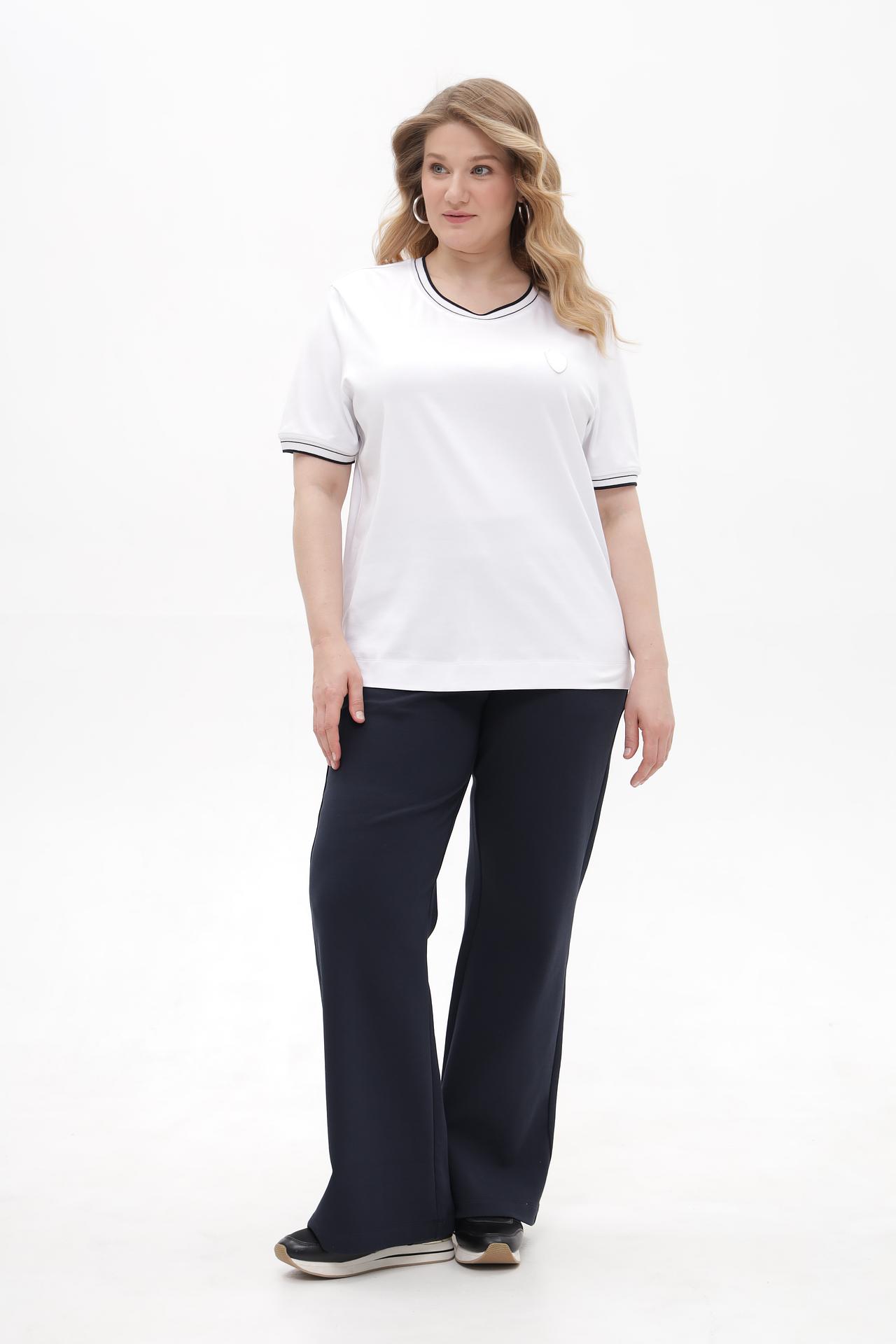 - Контрастная отделка: Аккуратная окантовка на горловине и рукавах освежает классический дизайн. Эта деталь делает простую белую футболку более выразительной и стильной.