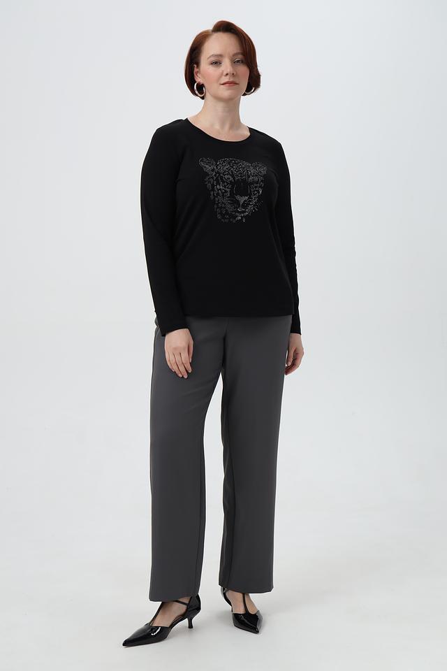 Особенность данной модели – эффектный принт в виде тигра, выполненный в серой гамме. Принт расположен на передней части лонгслива и добавляет образу динамичности и индивидуальности. Лонгслив имеет классический крой с длинными рукавами и круглым вырезом горловины.