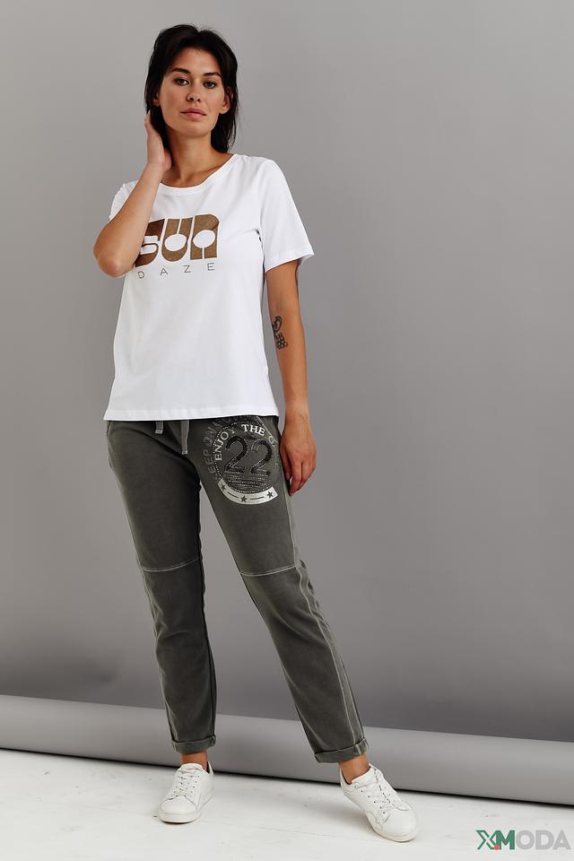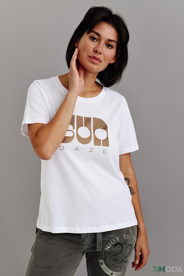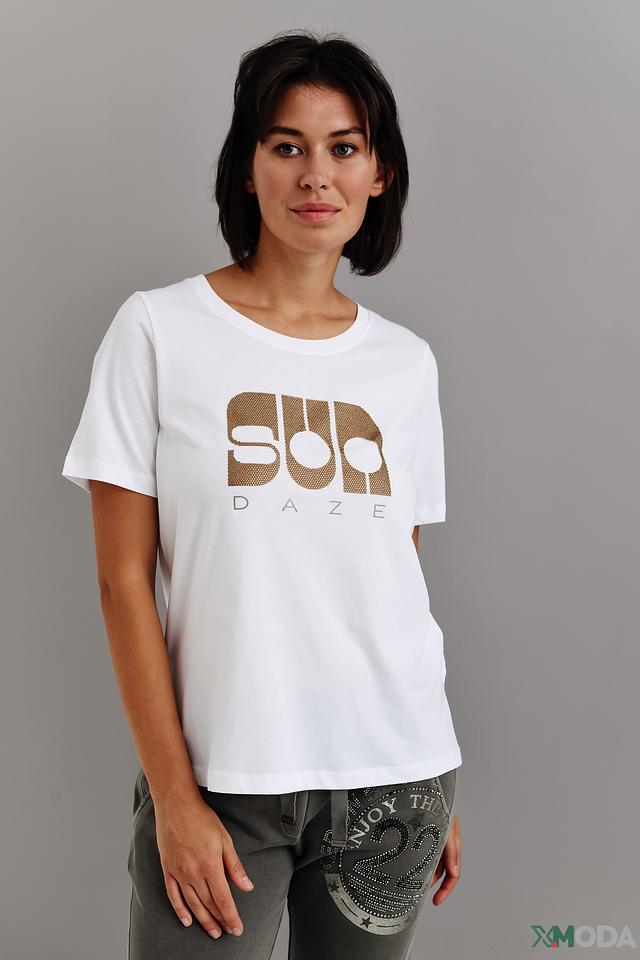 Белая футболка Margittes с золотистым принтом "Sun Daze" – стильная и комфортная модель из 100% хлопка. Прямой крой и короткие рукава обеспечивают свободу движений, а оригинальный дизайн добавит изюминку вашему образу. Состав: хлопок 100%