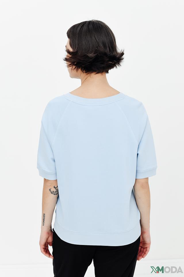Модель имеет свободный крой, короткие рукава и круглый вырез горловины. Пуловер изготовлен из высококачественного хлопка (83%) с добавлением полиэстера (17%), что обеспечивает комфорт при носке и сохранение формы.