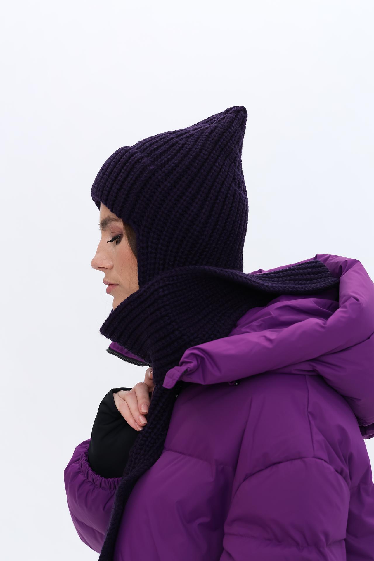 Шапка Marhatter вязаная с манишкой тёмно-фиолетовая