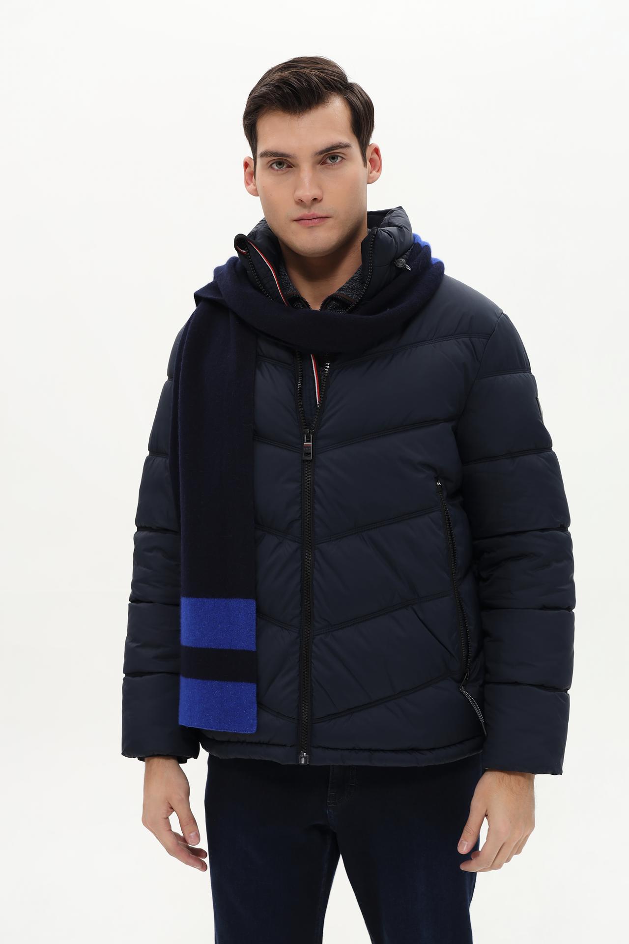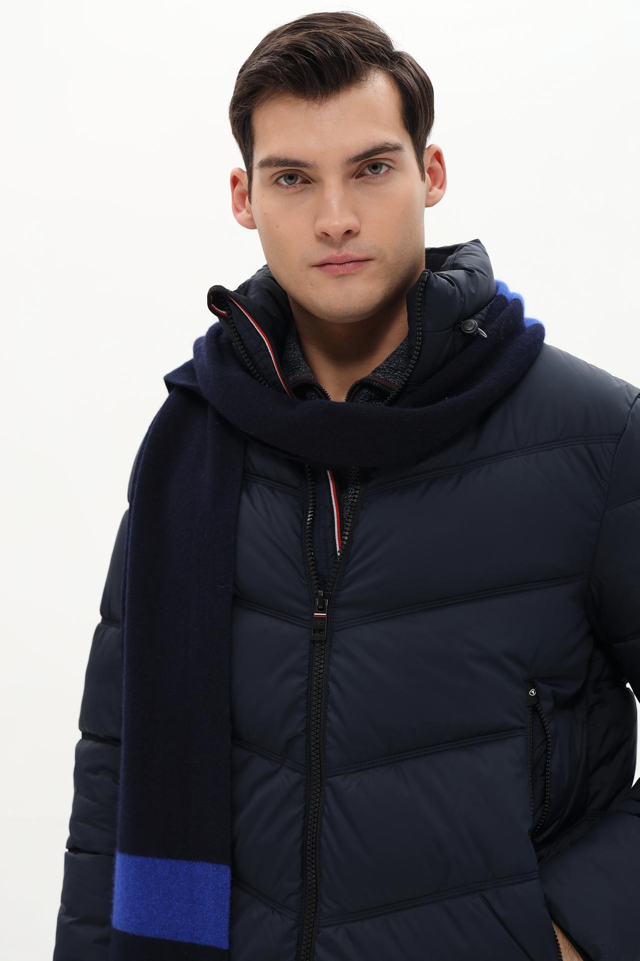 - Классический дизайн: Темно-синий цвет с синими полосами делает этот шарф универсальным аксессуаром.