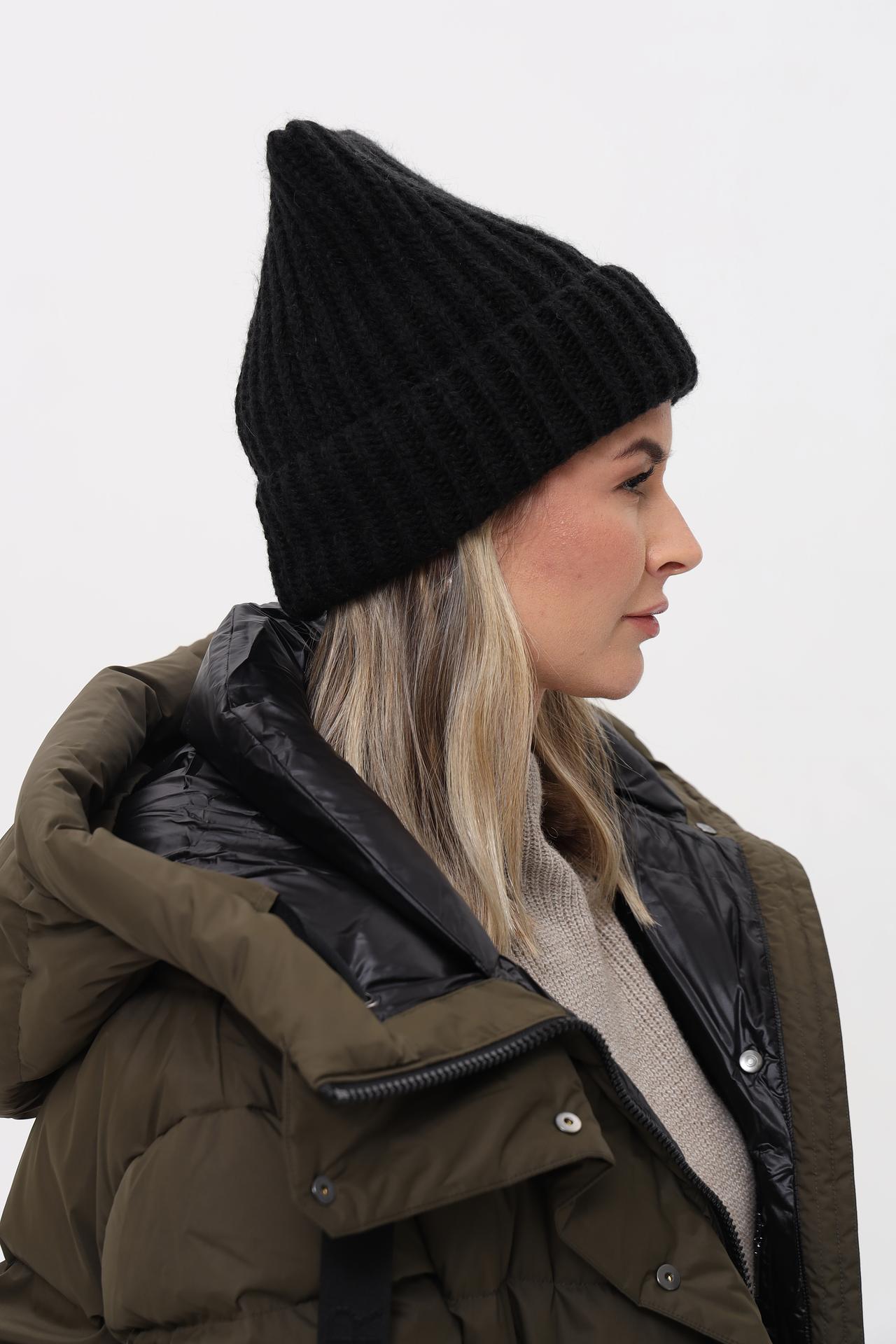 - Универсальность: Классический чёрный цвет позволяет легко сочетать шапку с различной верхней одеждой, делая её незаменимым аксессуаром в холодное время года.