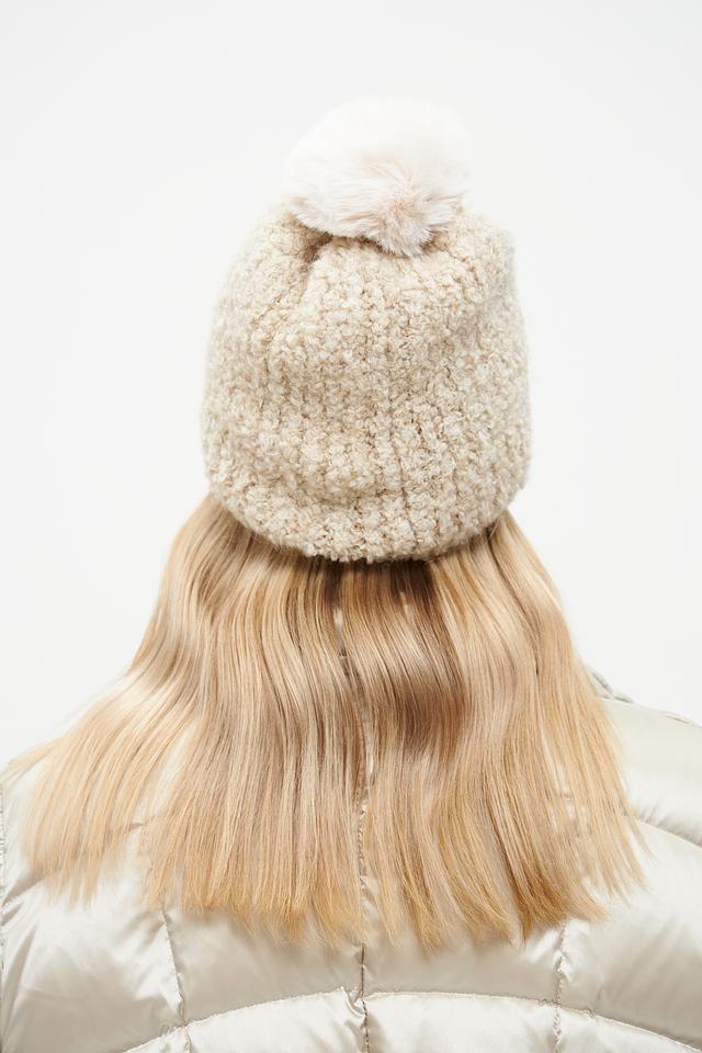 Бежевая вязаная шапка от Marhatter с помпоном – стильный и тёплый аксессуар для зимнего сезона. Изготовлена из мягкого сочетания акрила, мохера и шерсти, обеспечивающего комфорт и тепло в холодную погоду. Состав: полиакрил 50%, мохер 22%, полиамид 16%, шерсть 10%, стрейч 2%