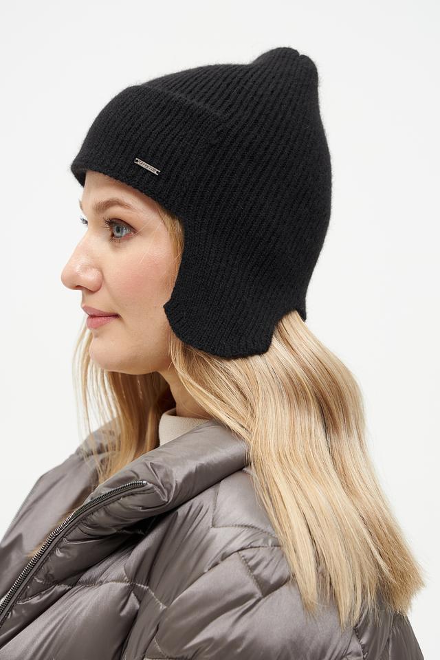 Чёрная шапка от Marhatter с удобными ушами, выполненная из сочетания полиамида, вискозы и ангоры. Модель обеспечивает комфорт и тепло в холодную погоду. Состав: полиамид 50%, вискоза 30%, ангора 20%