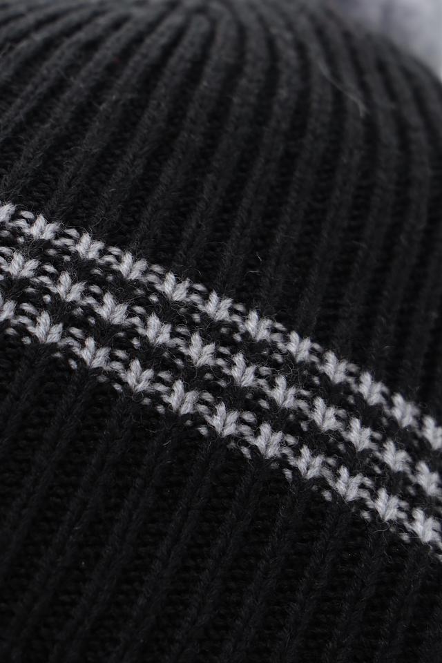 Вязаная текстура шапки не только приятна на ощупь, но и обеспечивает хорошую воздухопроницаемость. Эластичный материал позволяет шапке идеально облегать голову, не сдавливая её. Белая полоса с узором добавляет шапке оригинальности.