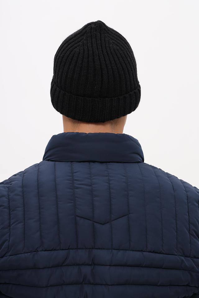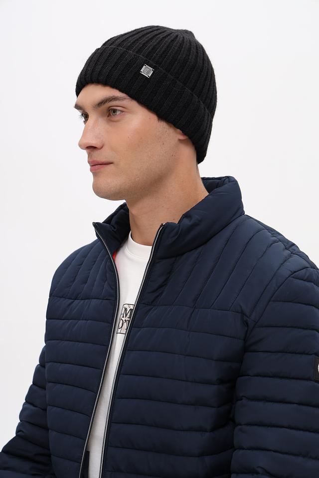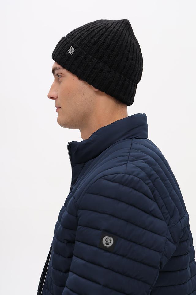 Дизайн шапки лаконичный и универсальный. Она плотно прилегает к голове, защищая от холода и ветра. На лицевой стороне шапки расположен небольшой металлизированный логотип бренда, добавляющий изысканности.