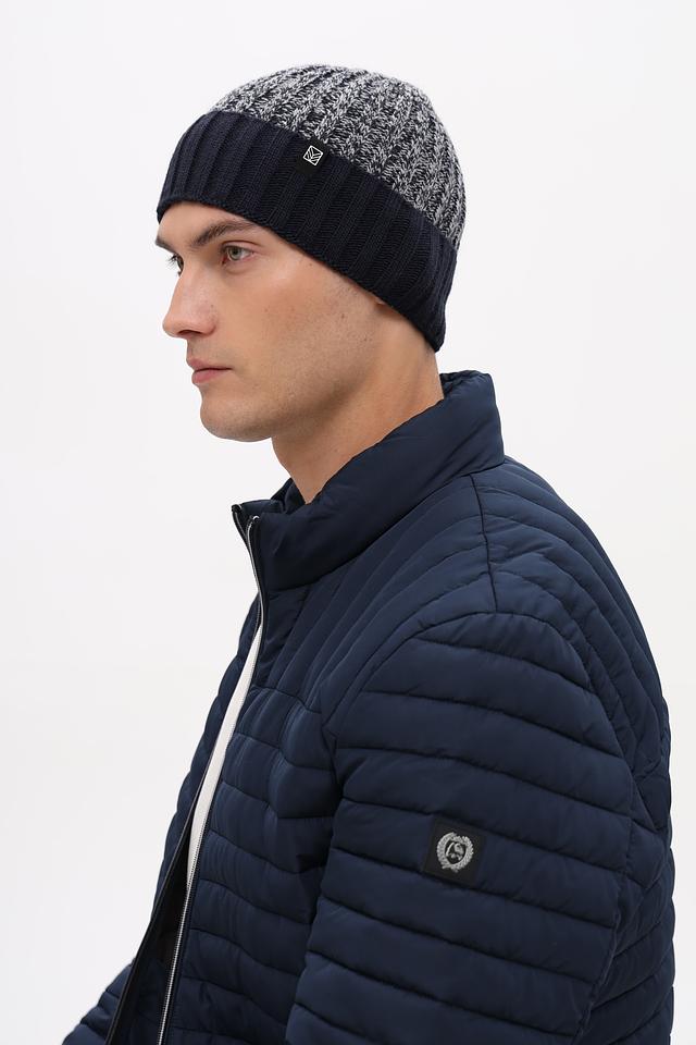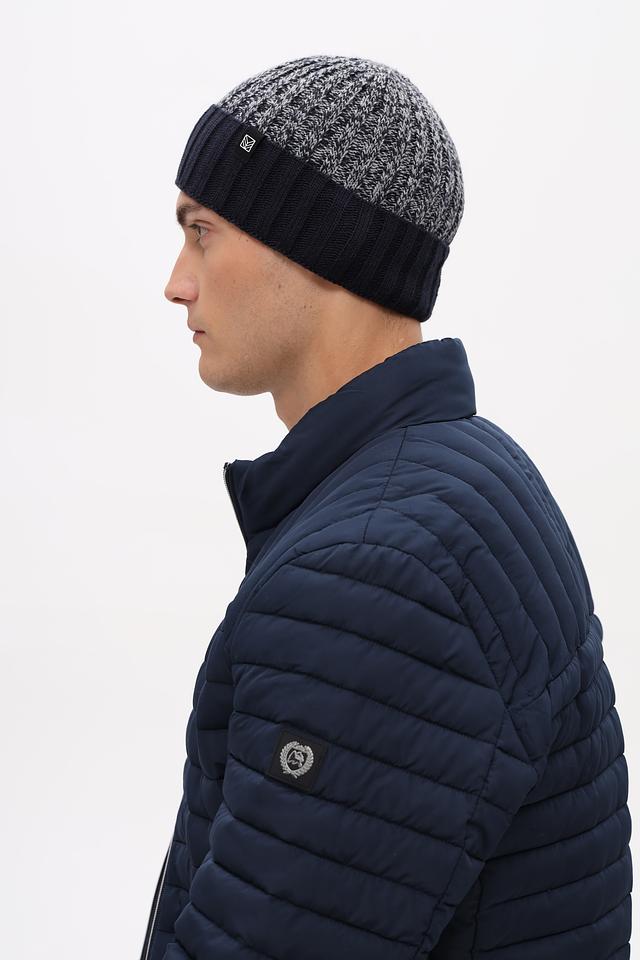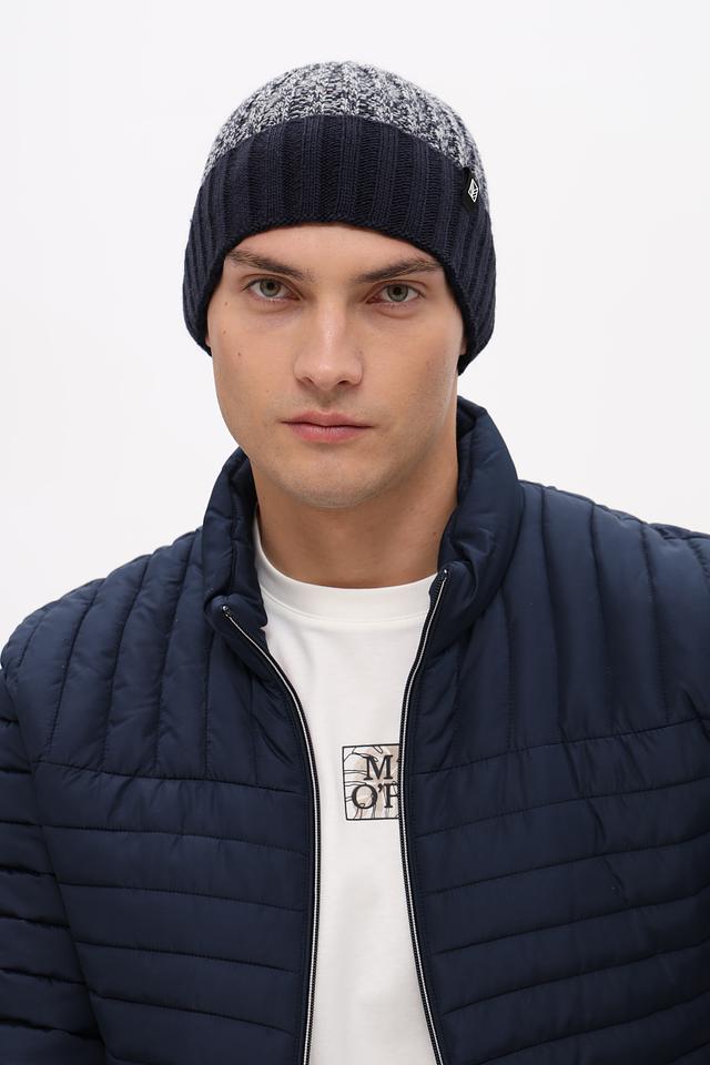 Мужская шапка Marhatter тёмно-синего цвета выполнена из мягкого вязаного полотна с меланжевым верхом. Аксессуар дополнена небольшим логотипом бренда. Идеальный выбор для холодной погоды. Состав: полиакрил 85%, полиамид 15%