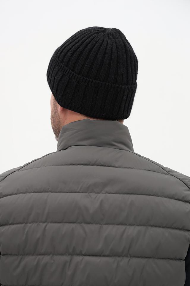Чёрный цвет делает её универсальной, позволяя легко сочетать с различными элементами гардероба. Шапка имеет классический дизайн с плотной вязкой, обеспечивающей надежную защиту от холода.