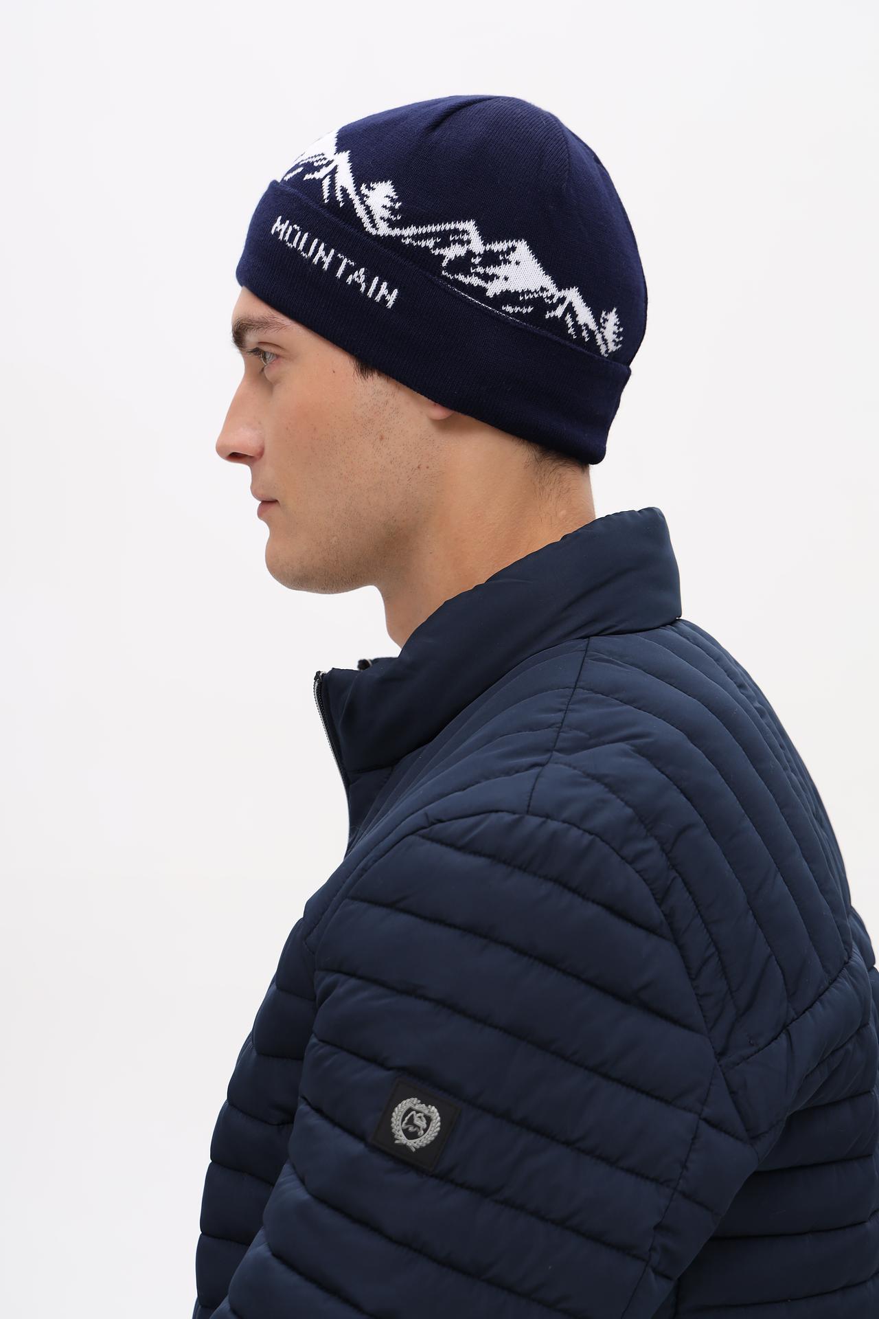 Шапка Marhatter темно-синяя с узором горы и надписью Mountain