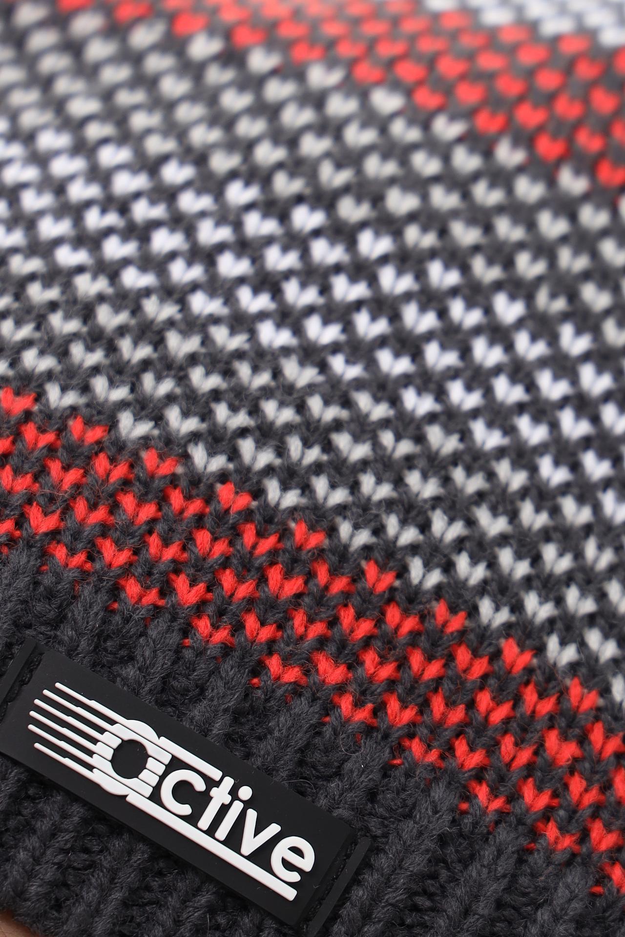 - Дизайн: Шапка украшена горизонтальными полосами, сочетающими серый, белый и ярко-красный цвета. Оригинальный узор и лаконичный дизайн делают ее универсальной для сочетания с различной верхней одеждой.