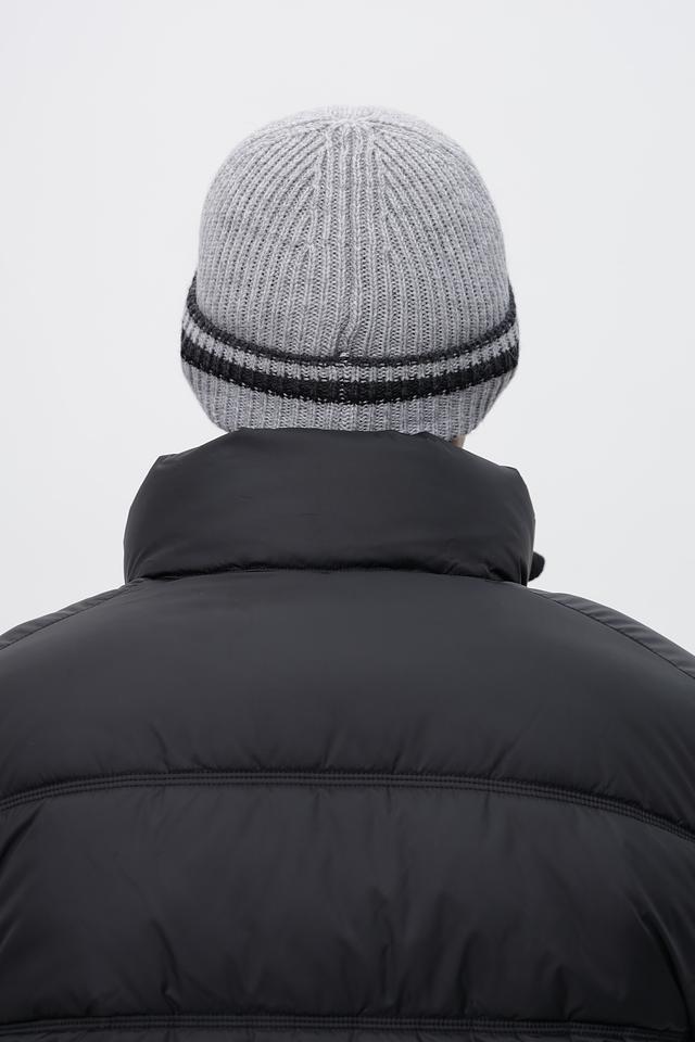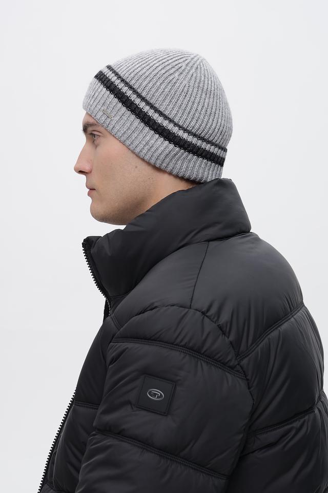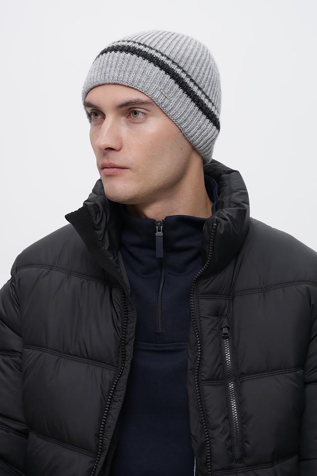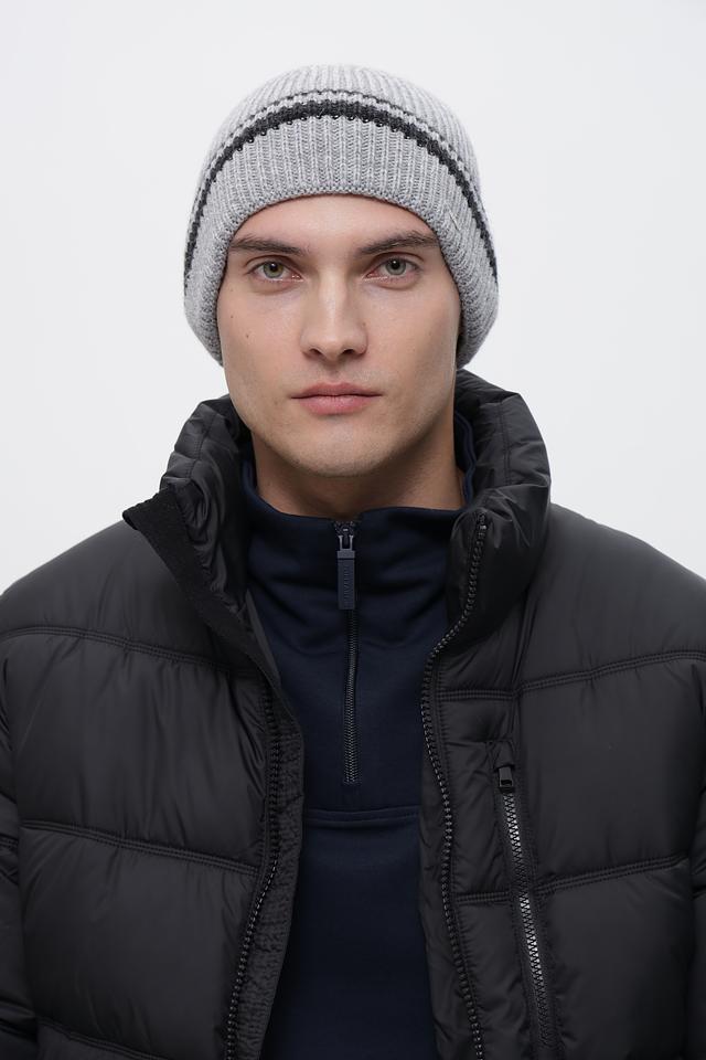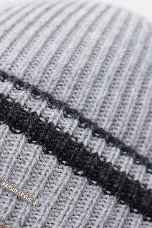 Стильная шапка Marhatter серого цвета с контрастной чёрной полоской. Изготовлена из мягкого и тёплого сочетания акрила, шерсти, полиамида и альпаки. Состав: полиакрил 47%, шерсть 30%, полиамид 13%, альпака 10%
