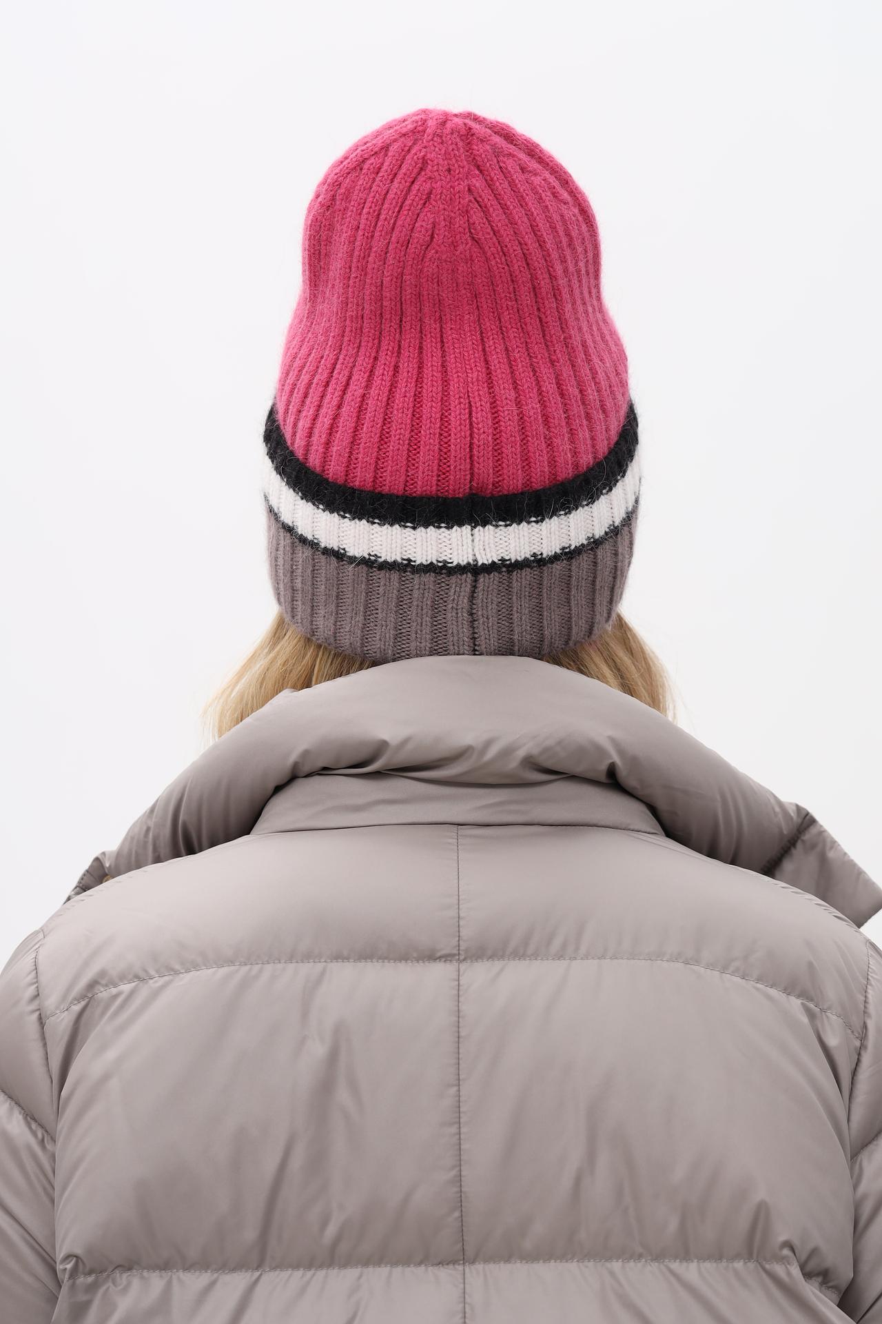 - Стильный дизайн: Модель дополнена выразительными горизонтальными полосками, которые придают шапке динамичный и современный вид. Цветовые акценты гармонично сочетаются, делая эту шапку универсальной для многих образов.