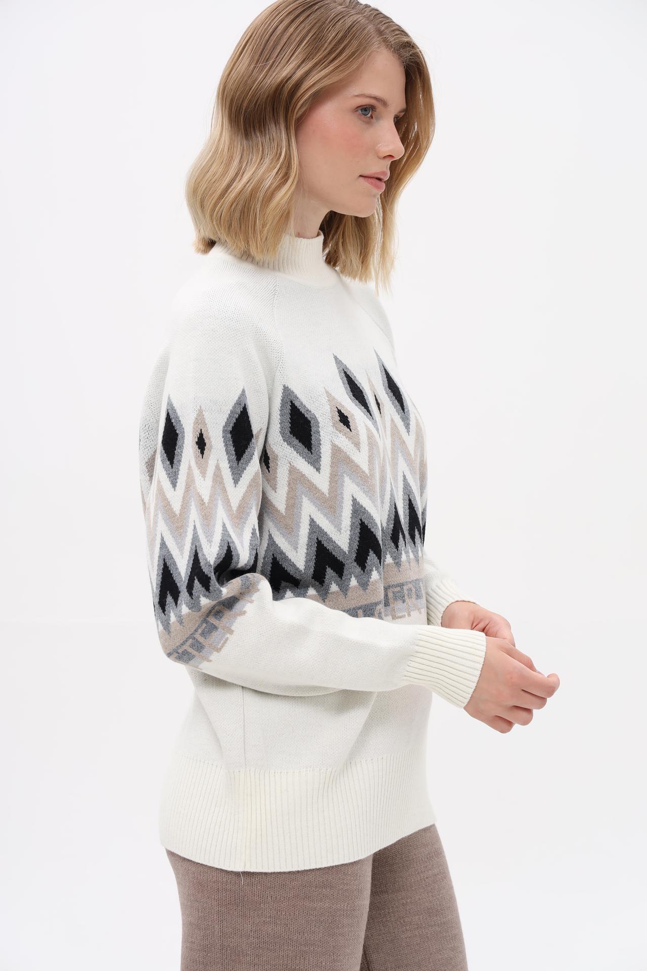 Элегантный и уютный пуловер станет прекрасным дополнением к вашему гардеробу. Сочетание вискозы, шерсти и полиакрила обеспечивает мягкость, тепло и долговечность изделия. Стильный геометрический узор придает пуловеру индивидуальность и делает его отличным выбором как для повседневной носки, так и для особых случаев. Этот пуловер идеально сочетается с различными элементами одежды, позволяя создавать разнообразные образы.