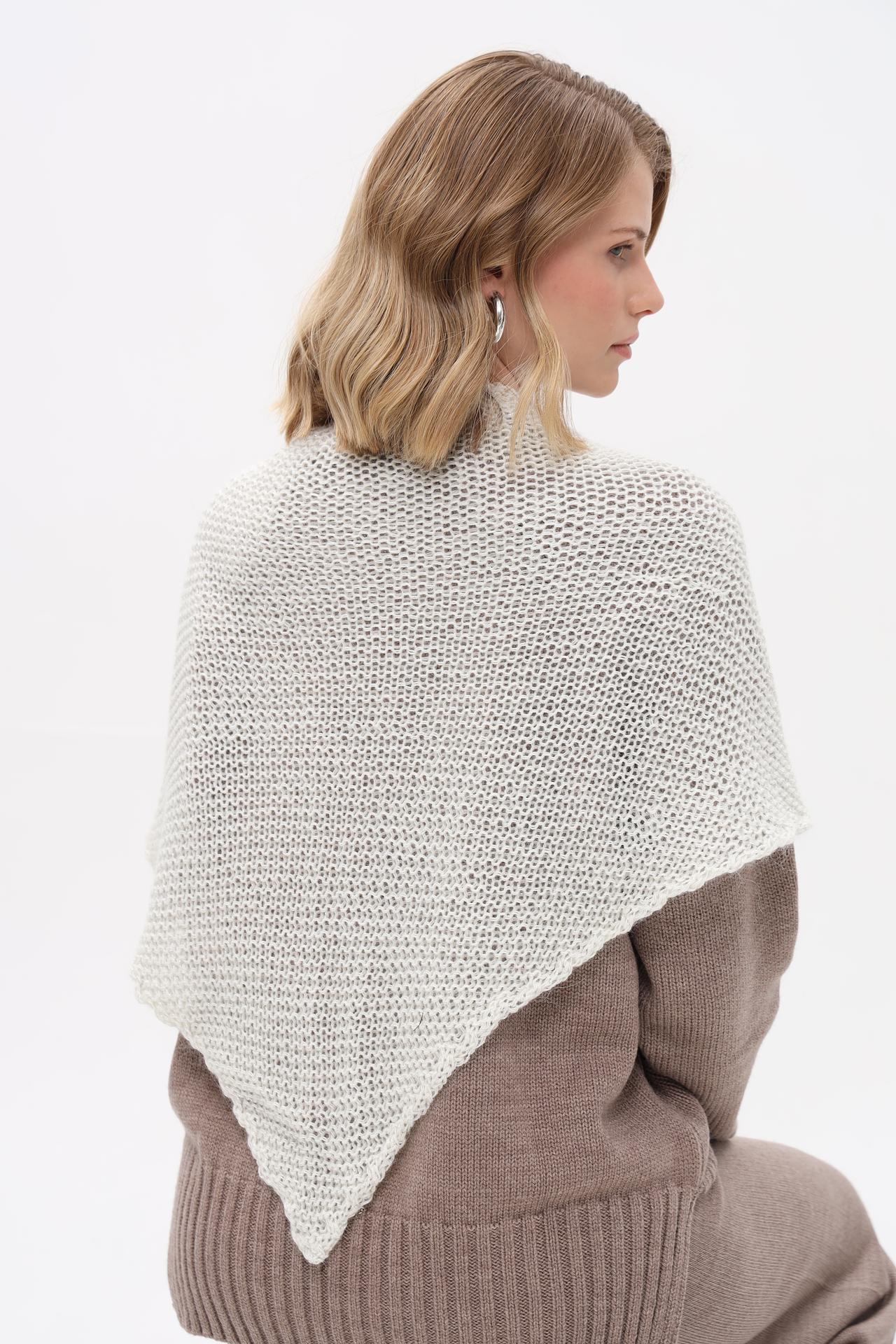 - Универсальность стиля: Классическая вязка и нейтральный цвет позволяют легко комбинировать платок с разнообразной одеждой. Он станет незаменимым элементом вашего гардероба, подходящим для любого случая.