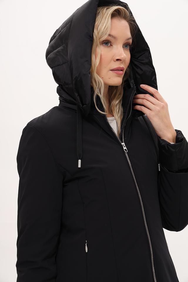 Модель имеет прямой крой, длину до середины колена и удобный капюшон, который защитит от ветра и непогоды. Пальто выполнено из высококачественного полиамида с добавлением эластана, что обеспечивает ему прочность, износостойкость и комфорт в носке.