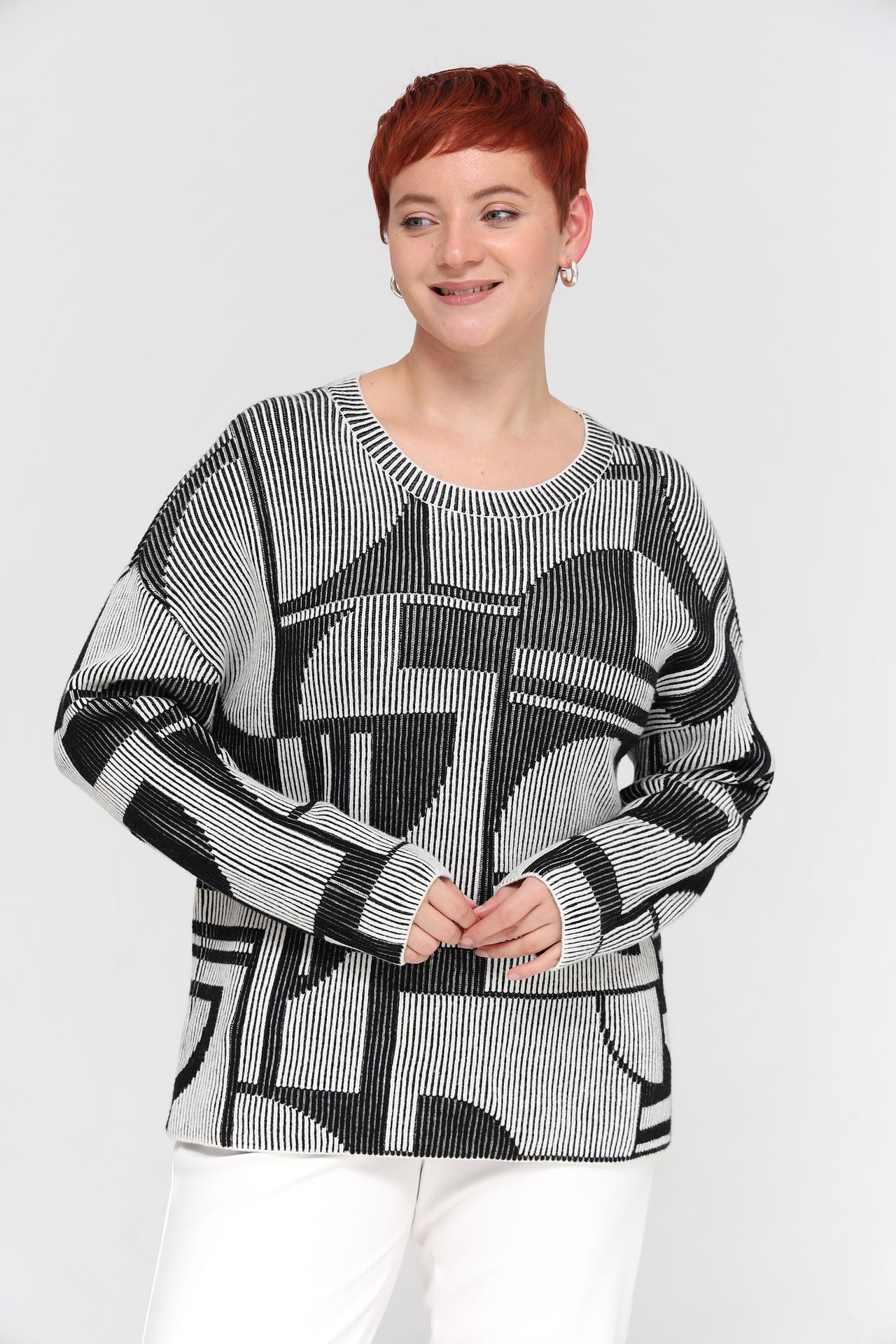 Пуловер Miss Lagotte геометрический чёрно-белый