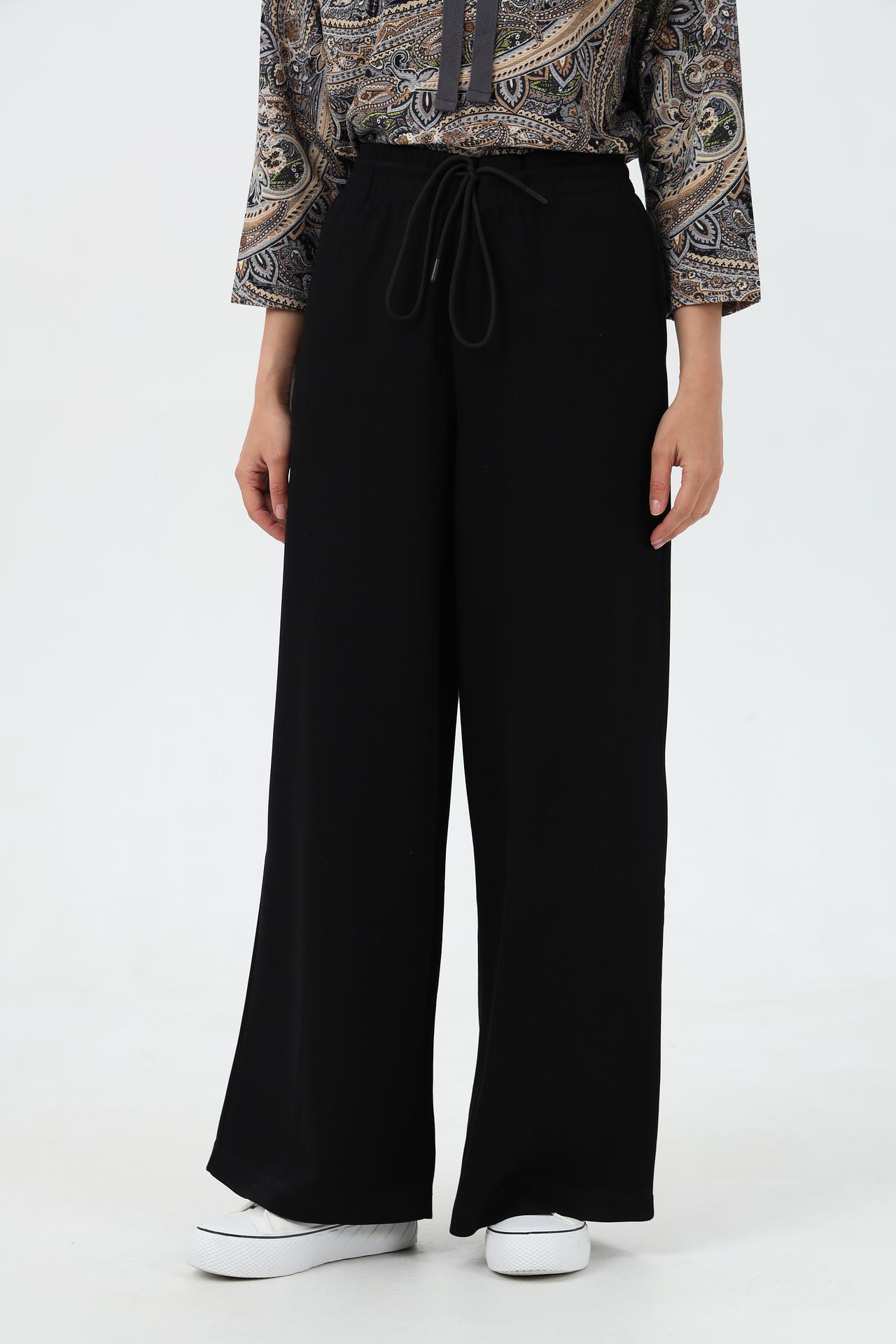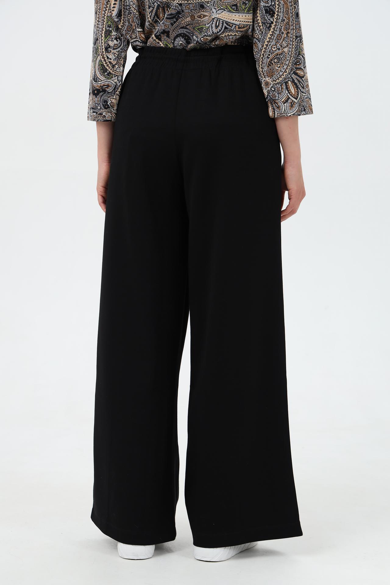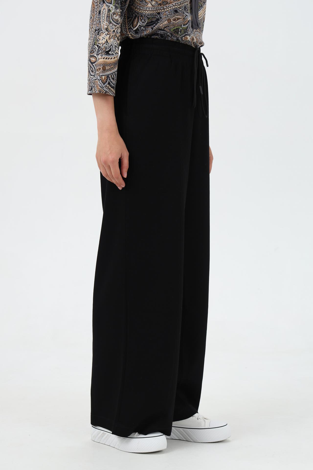 - Фасон: Широкие брюки палаццо с завышенной талией. Модель обеспечивает максимальный комфорт и свободу движений, создавая расслабленный, но при этом элегантный силуэт.