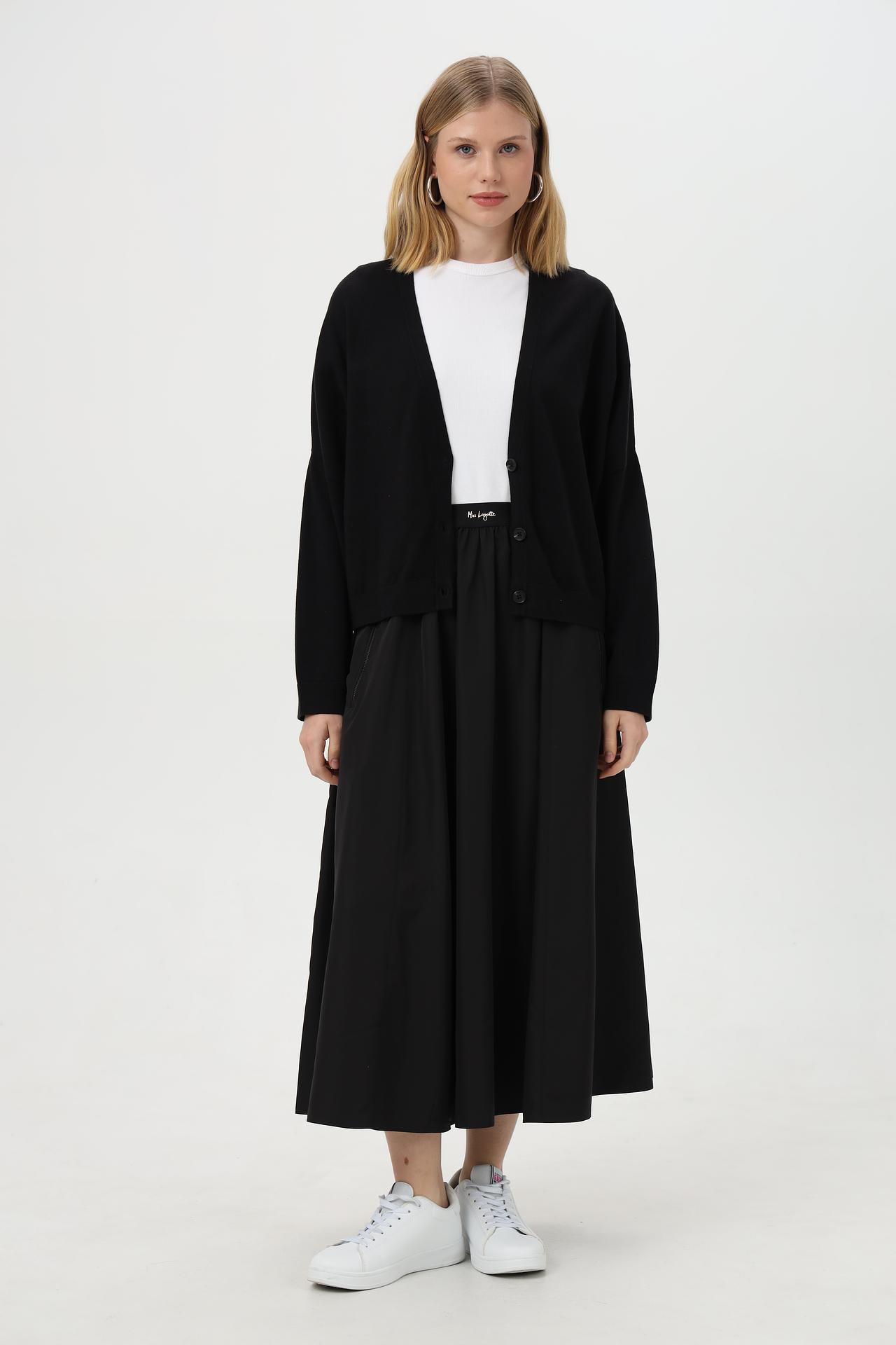 - Стильный дизайн: Лаконичный V-образный вырез и застежка на пуговицы создают утонченный силуэт. Свободный крой обеспечивает непринужденность и комфорт в течение всего дня.
