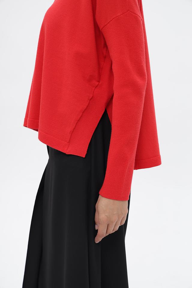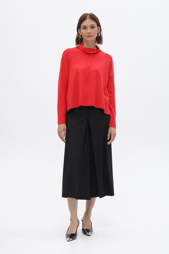Модель имеет прямой крой, длинные рукава и капюшон со шнурками, которые добавляют образу непринужденности. Яркий красный цвет пуловера подчеркнет вашу индивидуальность и привлечет внимание.