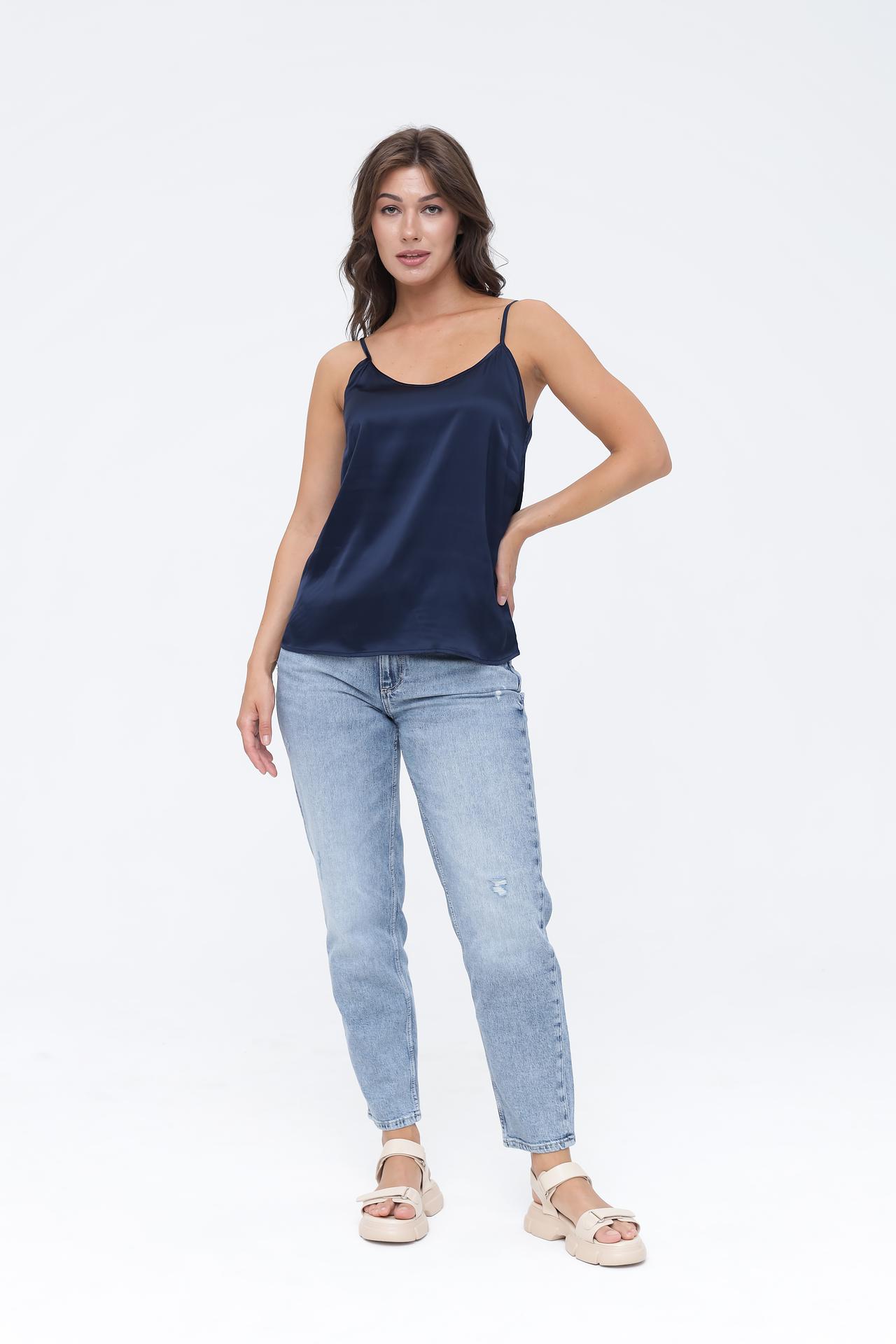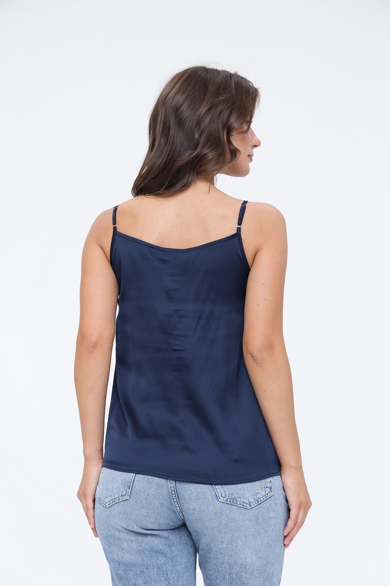 - Универсальность стиля: Благодаря классическому дизайну и насыщенному синему оттенку, топ легко комбинируется с джинсами, брюками или юбками. Подходит как для повседневных образов, так и для создания элегантных комплектов.