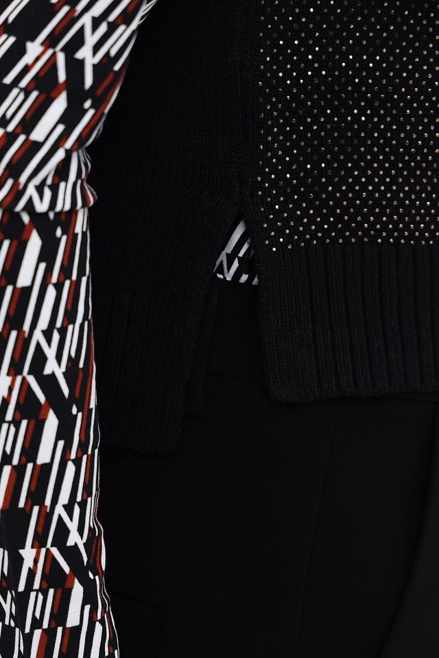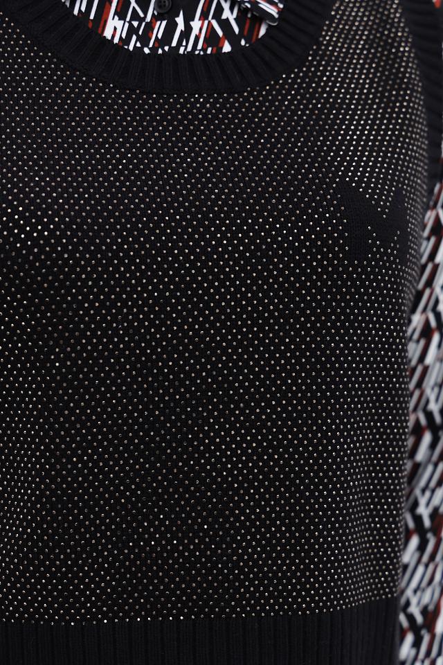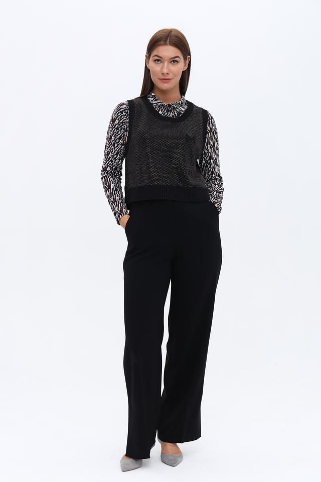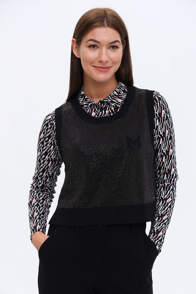 Чёрный жилет Monari с декоративной вышивкой "M" на спине. Модель выполнена из фактурного трикотажа с ажурным узором и имеет удобный V-образный вырез. Идеально дополнит базовый гардероб. Состав: хлопок 60%, полиакрил 40%