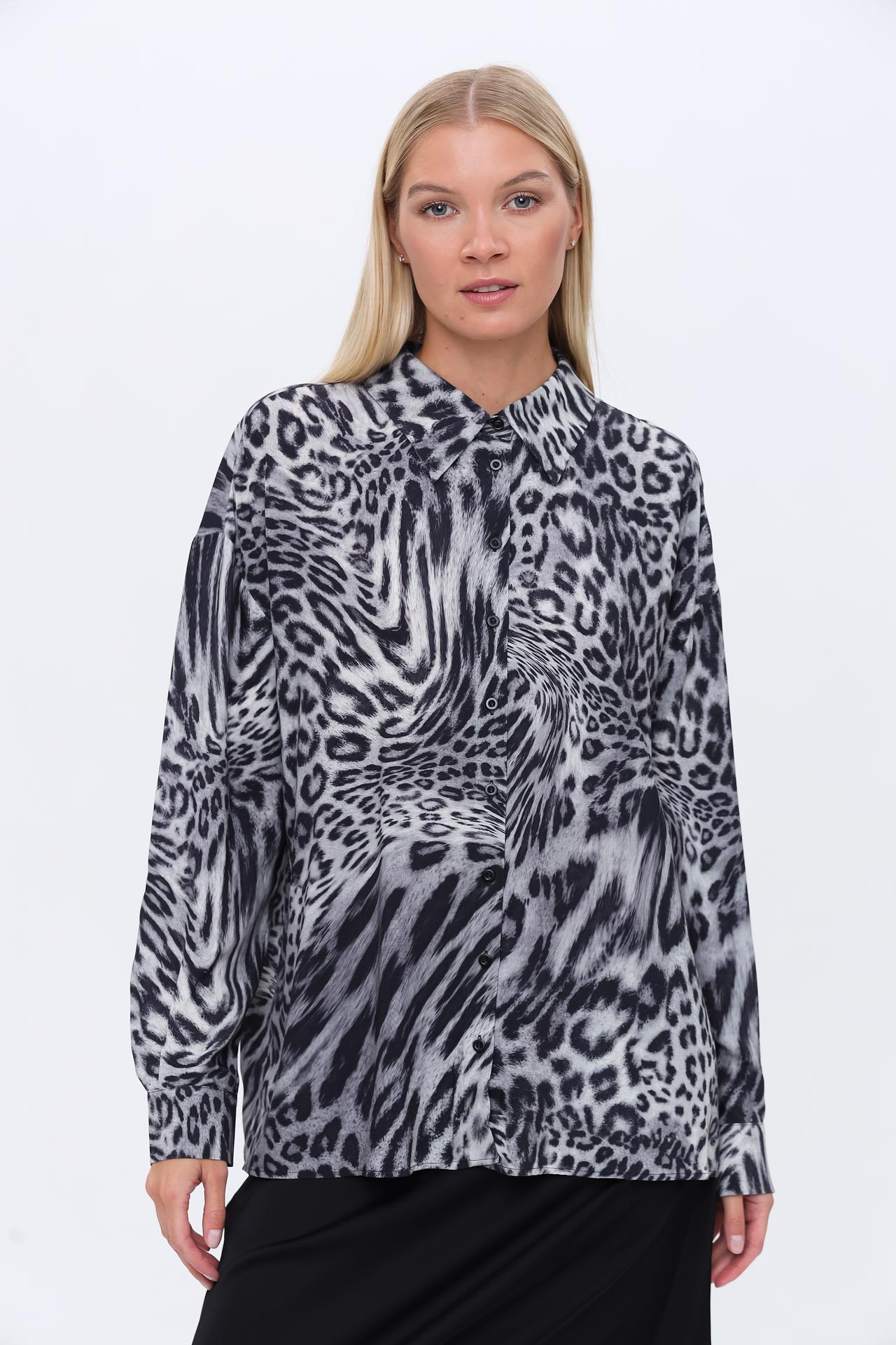 - Актуальный дизайн. Эффектный леопардовый принт в серо-черно-белой гамме подчеркнет вашу индивидуальность и добавит изюминку в повседневный или вечерний наряд. Классический крой с отложным воротником и манжетами на пуговицах идеально вписывается в офисный дресс-код и кэжуал стиль.