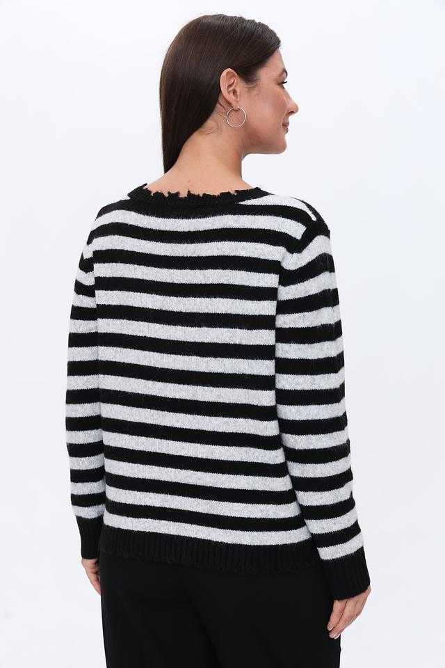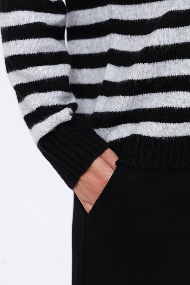 Этот стильный пуловер от Monari станет отличным дополнением к вашему гардеробу. Пуловер выполнен в классической полосатой расцветке – сочетание чёрного и белого цветов делает его универсальным и легко сочетаемым с другими вещами.