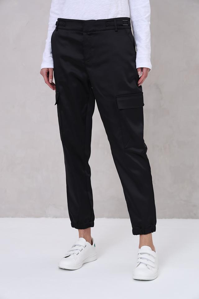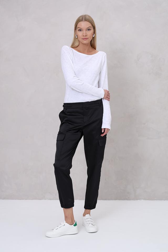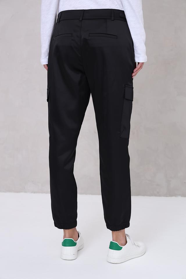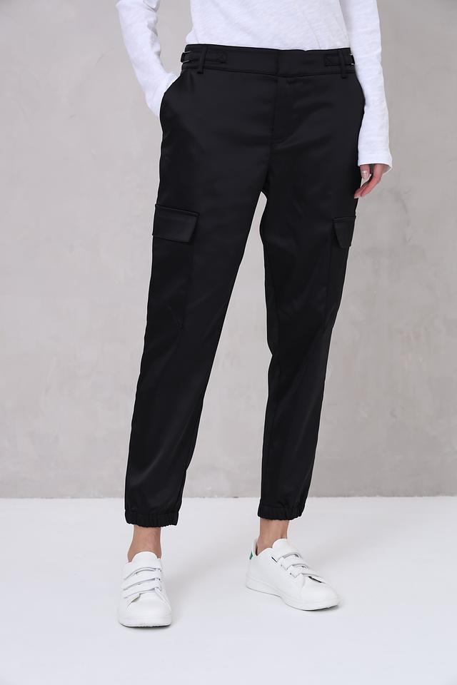 Чёрные брюки карго от Monari – стильное и комфортное решение для повседневного гардероба. Модель выполнена из гладкой ткани с карманами и эластичной резинкой на поясе и внизу брюк. Состав: полиэстер 97%, эластан 3%
