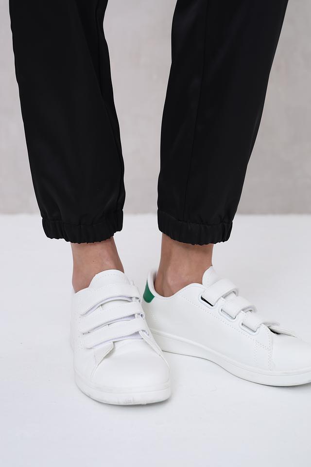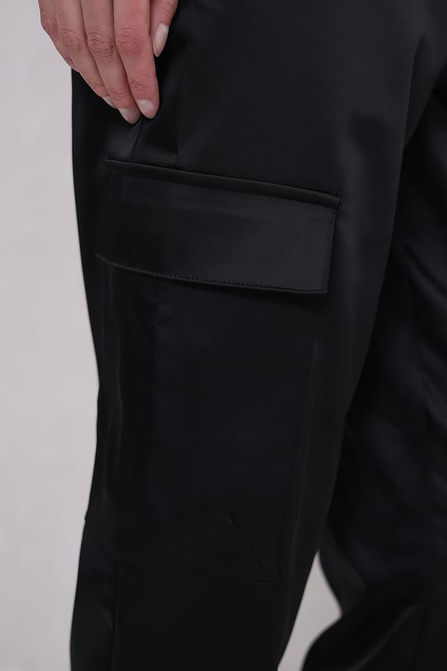 Брюки имеют удобный крой с эластичной резинкой на поясе и внизу штанин, что обеспечивает комфортную посадку и свободу движений. На брюках расположены функциональные карманы, добавляющие практичности и стиля.