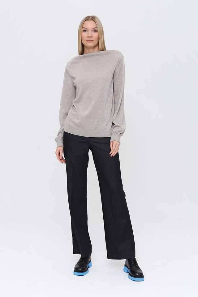 Пуловер выполнен из высококачественного трикотажа, в состав которого входит хлопок, вискоза, полиэстер и метализированное волокно. Такое сочетание материалов обеспечивает комфорт, мягкость и приятные тактильные ощущения.