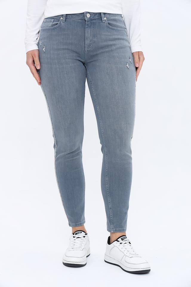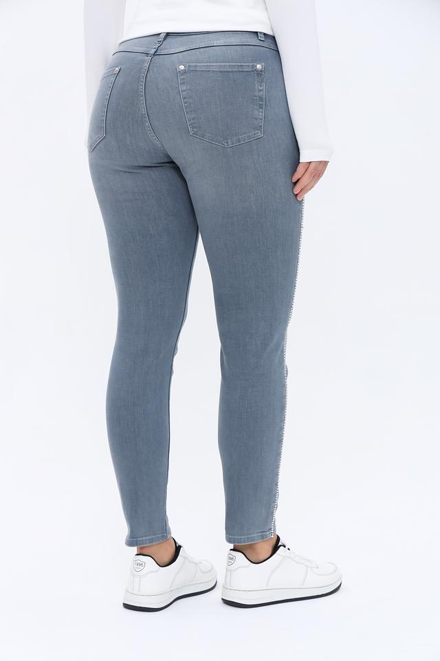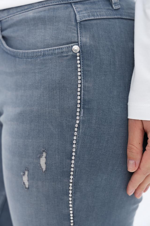 Серые джинсы Monari – это стильное сочетание комфорта и актуального дизайна. Модель выполнена в сером цвете с декоративной отделкой и небольшими потертостями, что придает ей современный вид. Состав: хлопок 86%, полиэстер 11%, эластан 3%