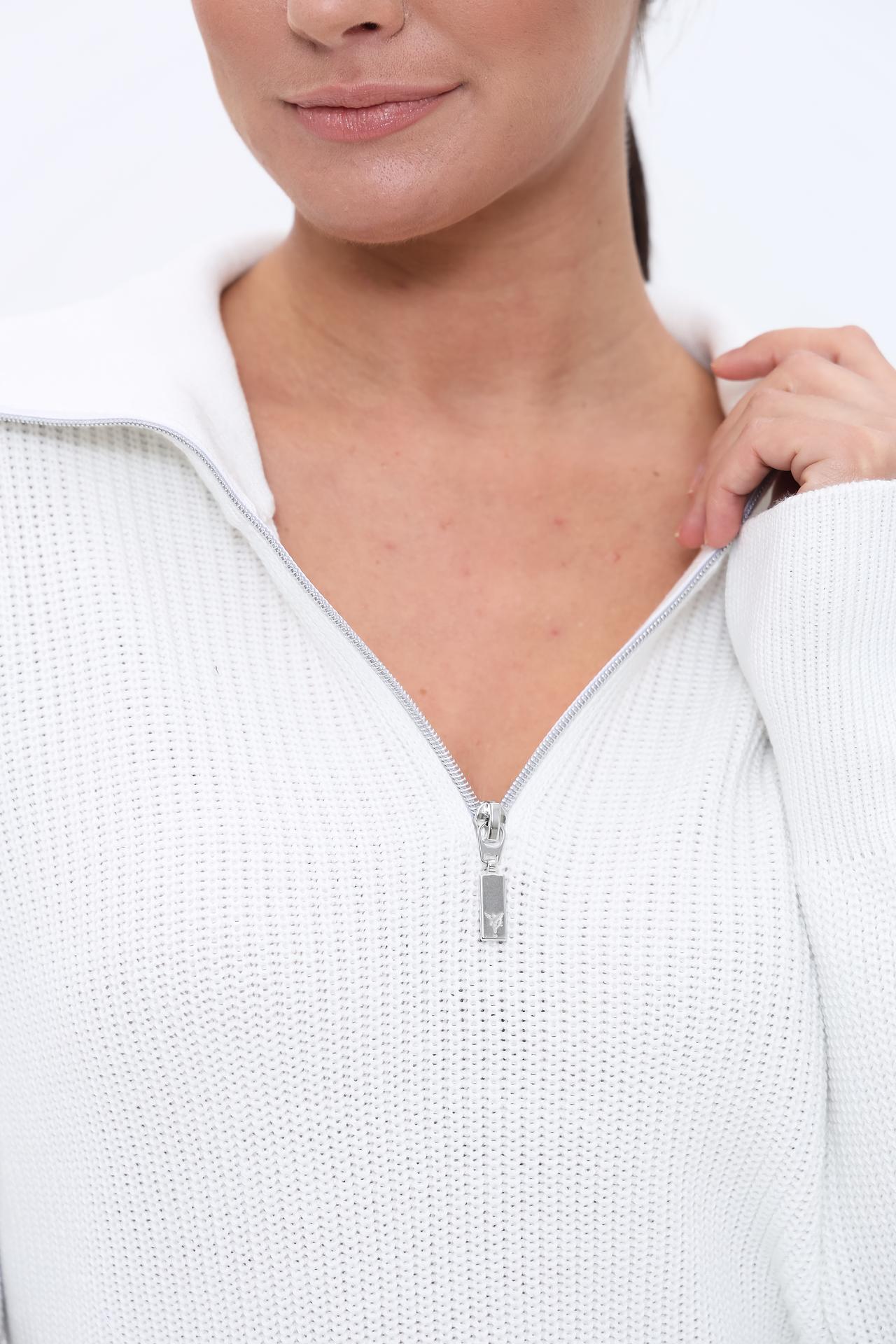 - Элегантный дизайн: Отложной воротник и короткая серебристая молния добавляют пуловеру изысканности и функциональности, позволяя регулировать глубину выреза. Свободный крой обеспечивает максимальную свободу движений и идеальную посадку на любую фигуру.