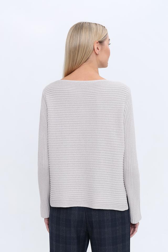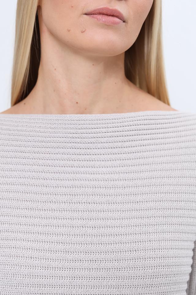 Модель имеет классический крой с округлым вырезом горловины и длинными рукавами. Текстурный трикотаж придает изделию особый шарм и элегантность. Пуловер приятен к телу и не сковывает движений.