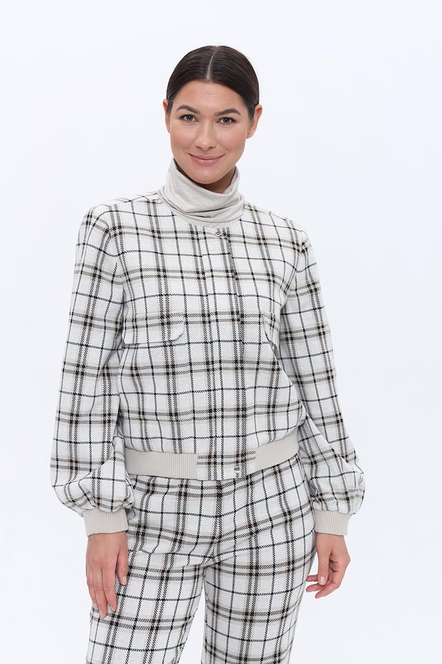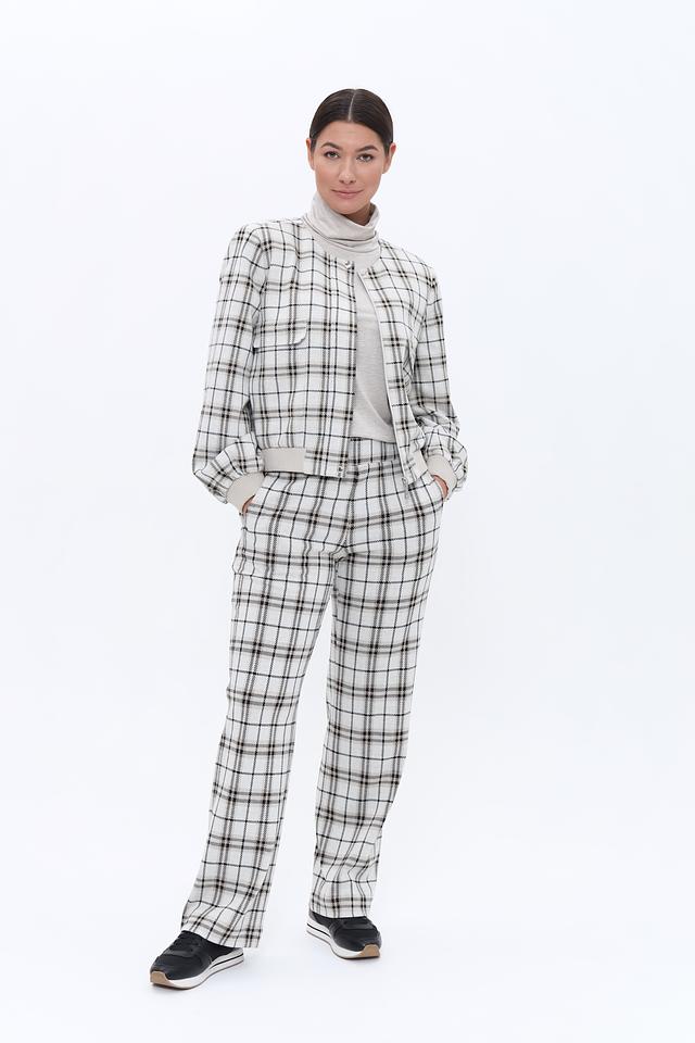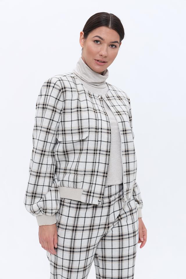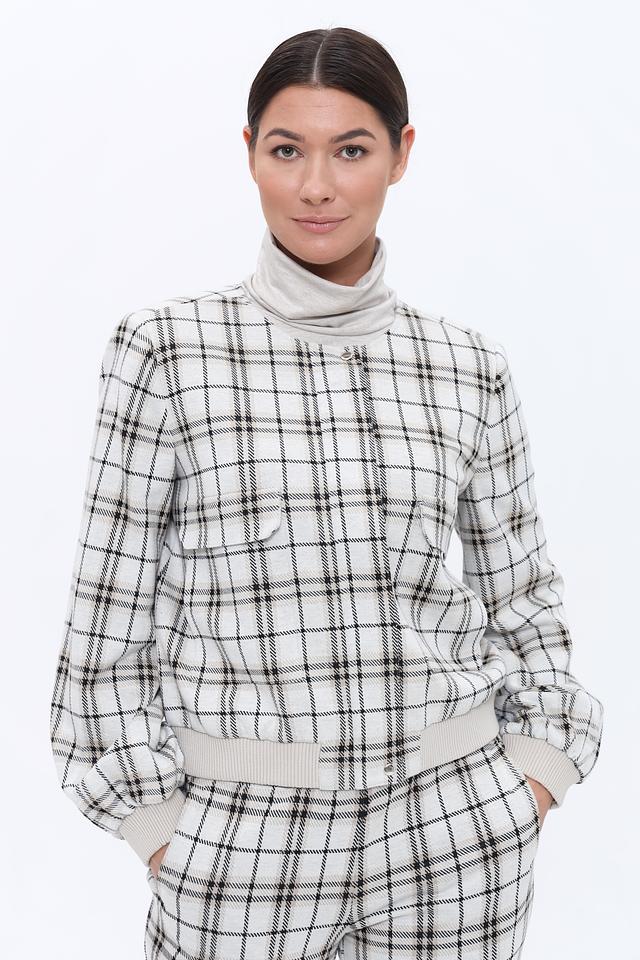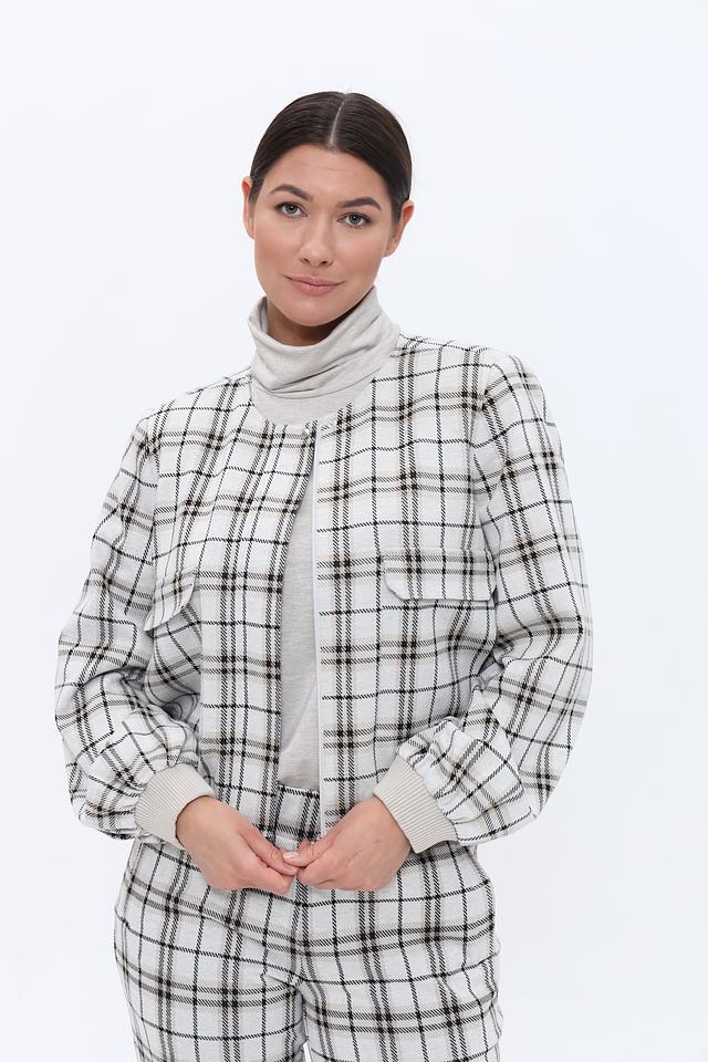 Жакет Monari белого цвета в классическую клетку – стильное и комфортное решение для создания модных образов. Модель выполнена из мягкой ткани с добавлением вискозы и эластана, что обеспечивает удобную посадку и свободу движений. Состав: полиэстер 70%, вискоза 28%, эластан 2%