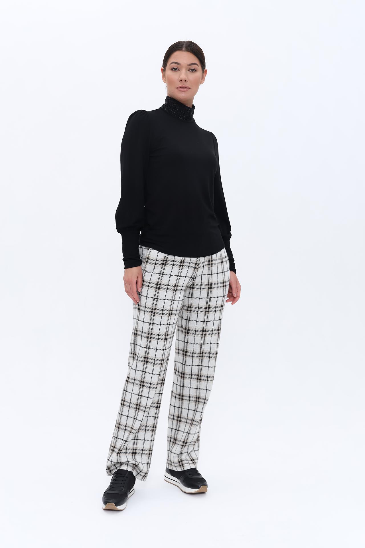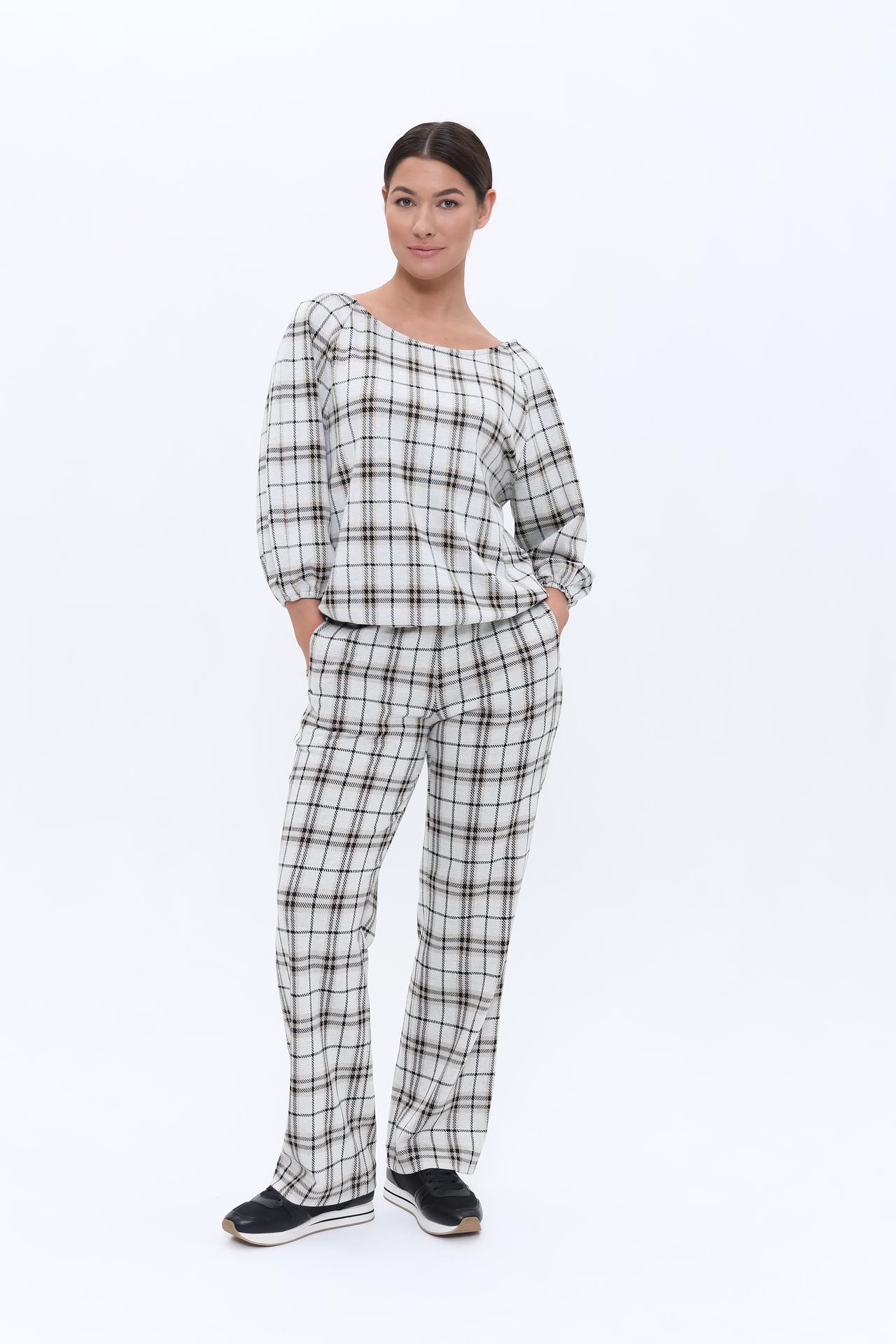 - Универсальный дизайн. Клетчатый принт и прямой крой позволяют легко сочетать брюки с различными топами и обувью.