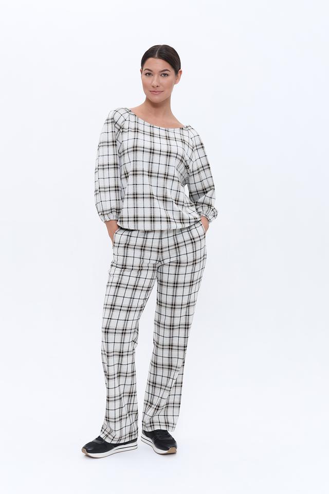 Эти брюки от Monari станут отличным дополнением к вашему гардеробу. Они выполнены в белой расцветке с графичным клетчатым принтом, который придает образу динамичность и современность.