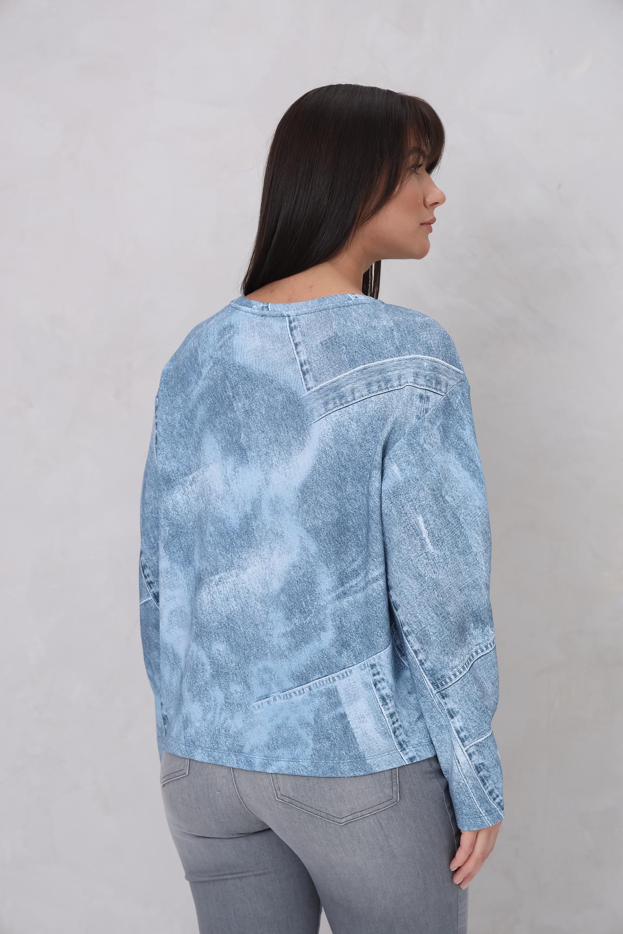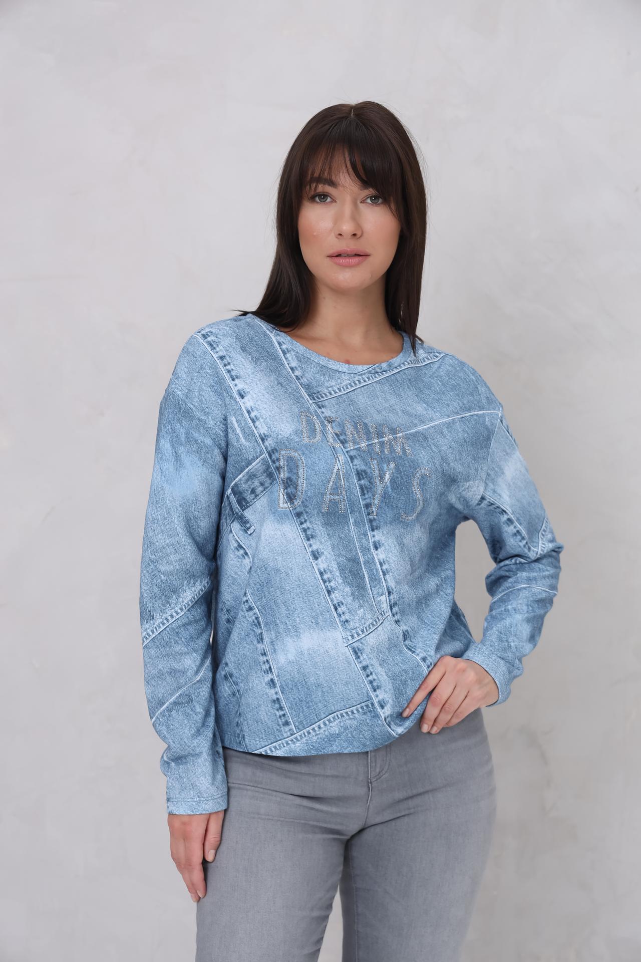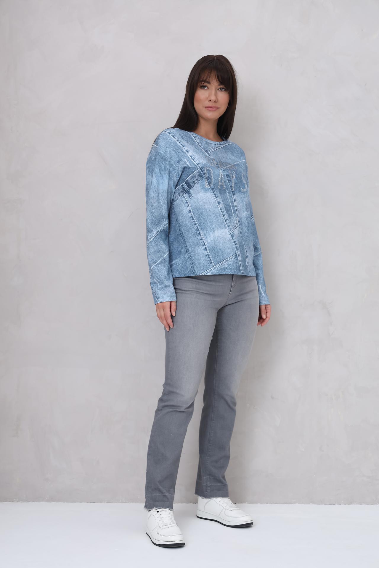 Пуловер Monari голубой с принтом и декоративными элементами