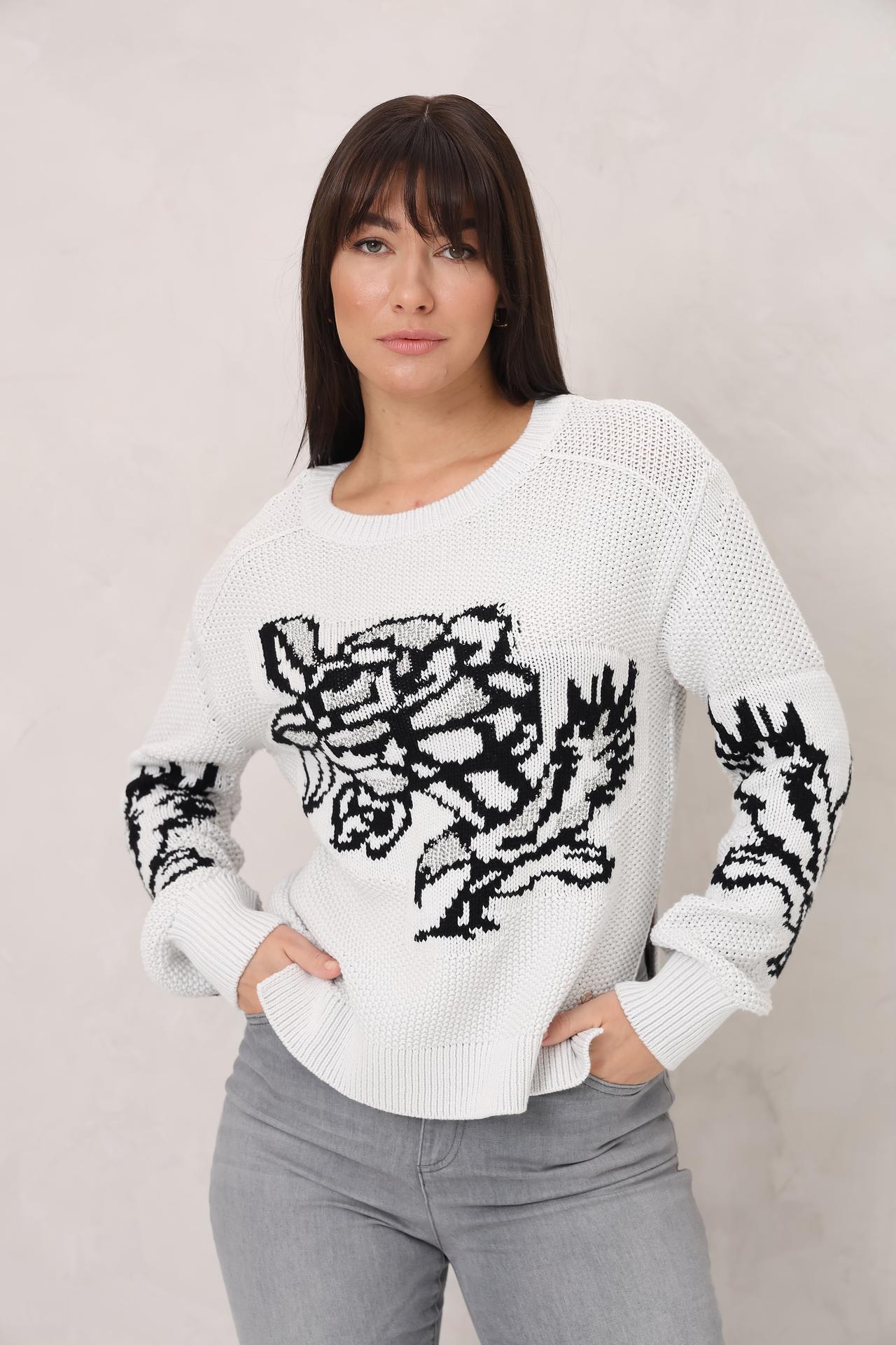 Этот женский пуловер имеет неповторимый дизайн с эффектным цветочным принтом, украшенным сверкающими стразами, которые добавляют образу изюминку и элегантность. Свободный крой обеспечивает удобство движений, а высокое качество материала гарантирует долговечность и приятные ощущения при носке.