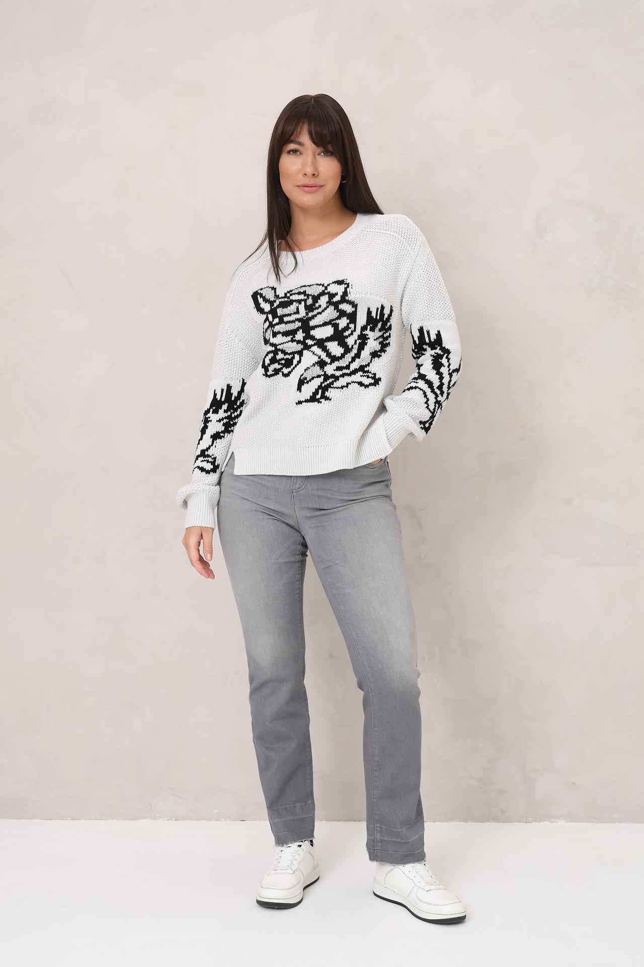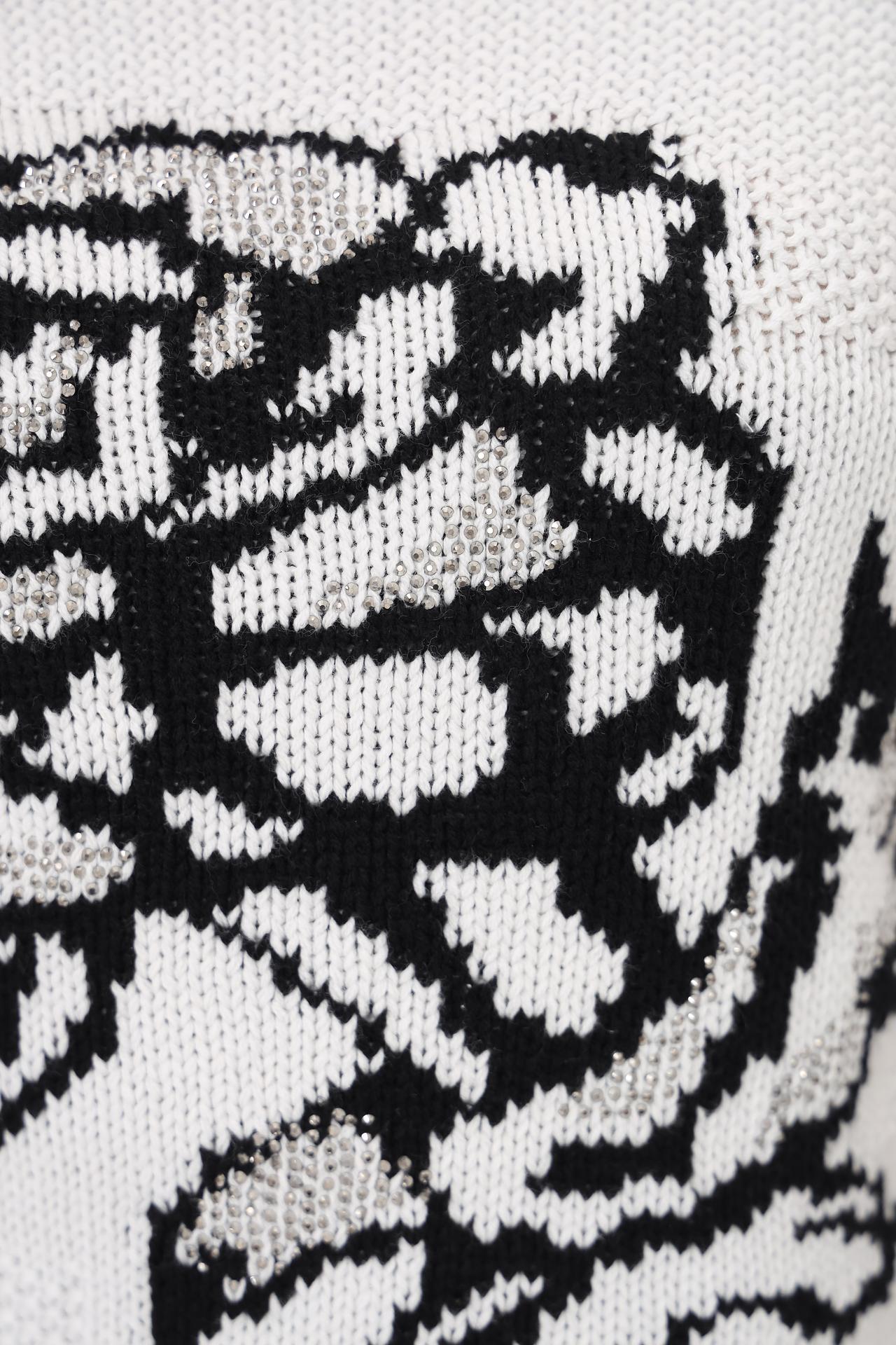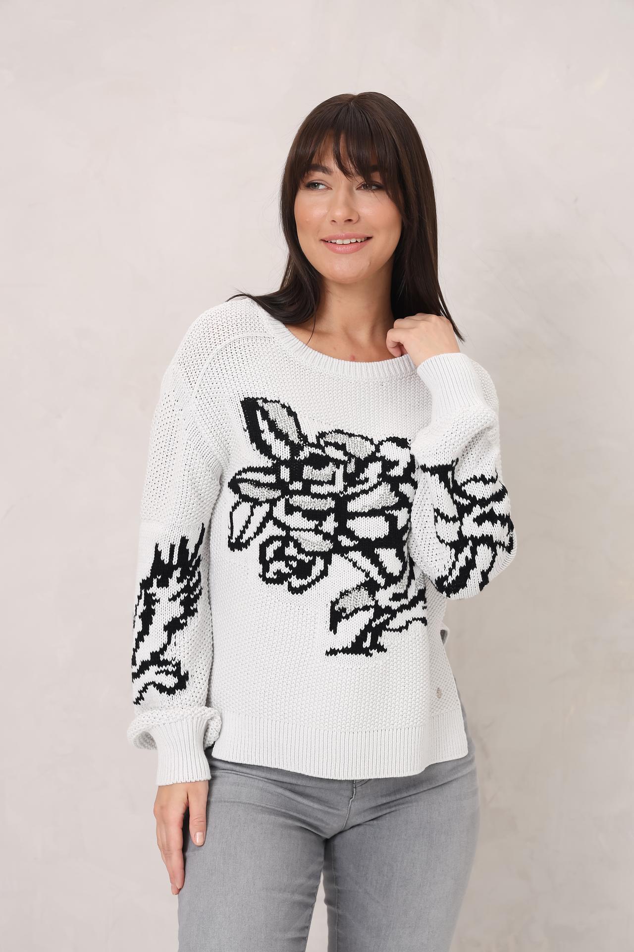 - Уникальный дизайн: Чёрный цветочный принт с деликатными стразами выделяет этот пуловер среди других моделей. Этот яркий акцент добавит вашему образу неповторимости и шика.