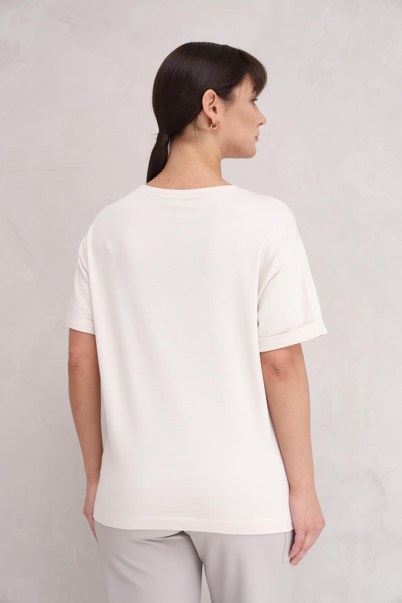 Стильная женская футболка Monari из высококачественного материала: 50% хлопок, 50% модал. Эта уникальная смесь обеспечивает невероятный комфорт и мягкость на коже. Приятная к телу, футболка идеально подходит для повседневной носки.