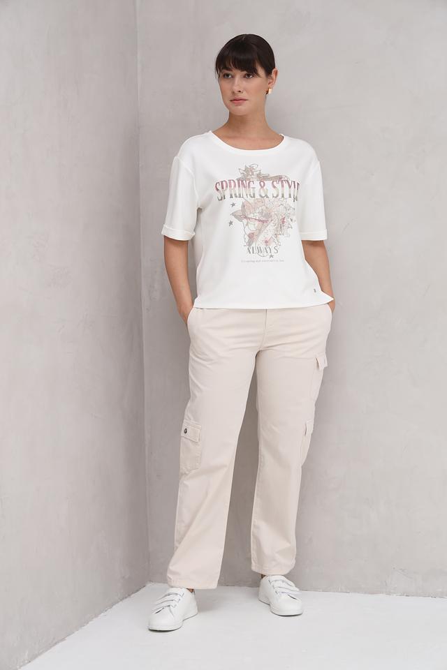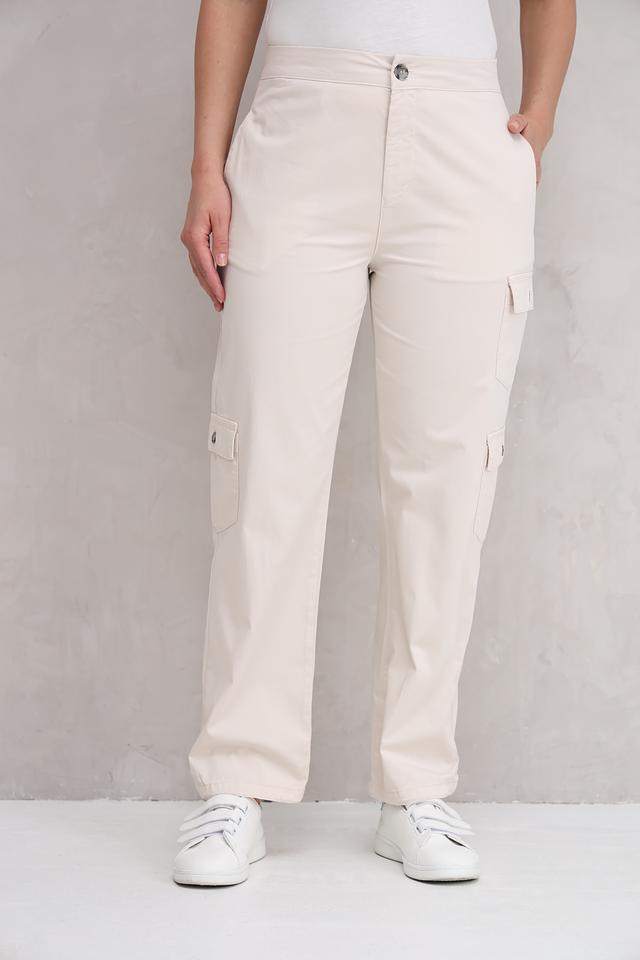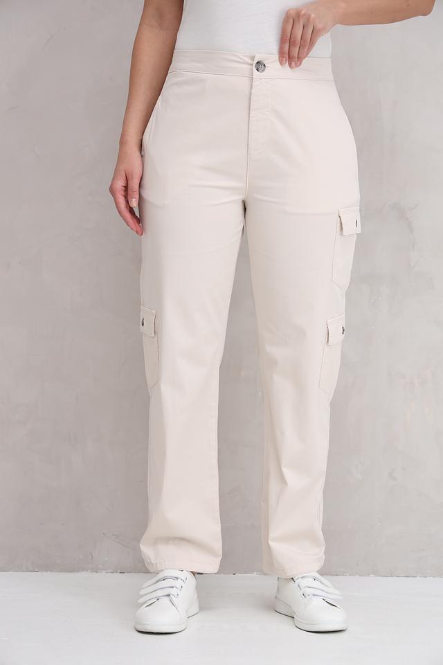 Представляем стильные брюки карго от бренда Monari. Эта модель выполнена в нежном бежевом цвете, который легко сочетается с различными элементами гардероба.