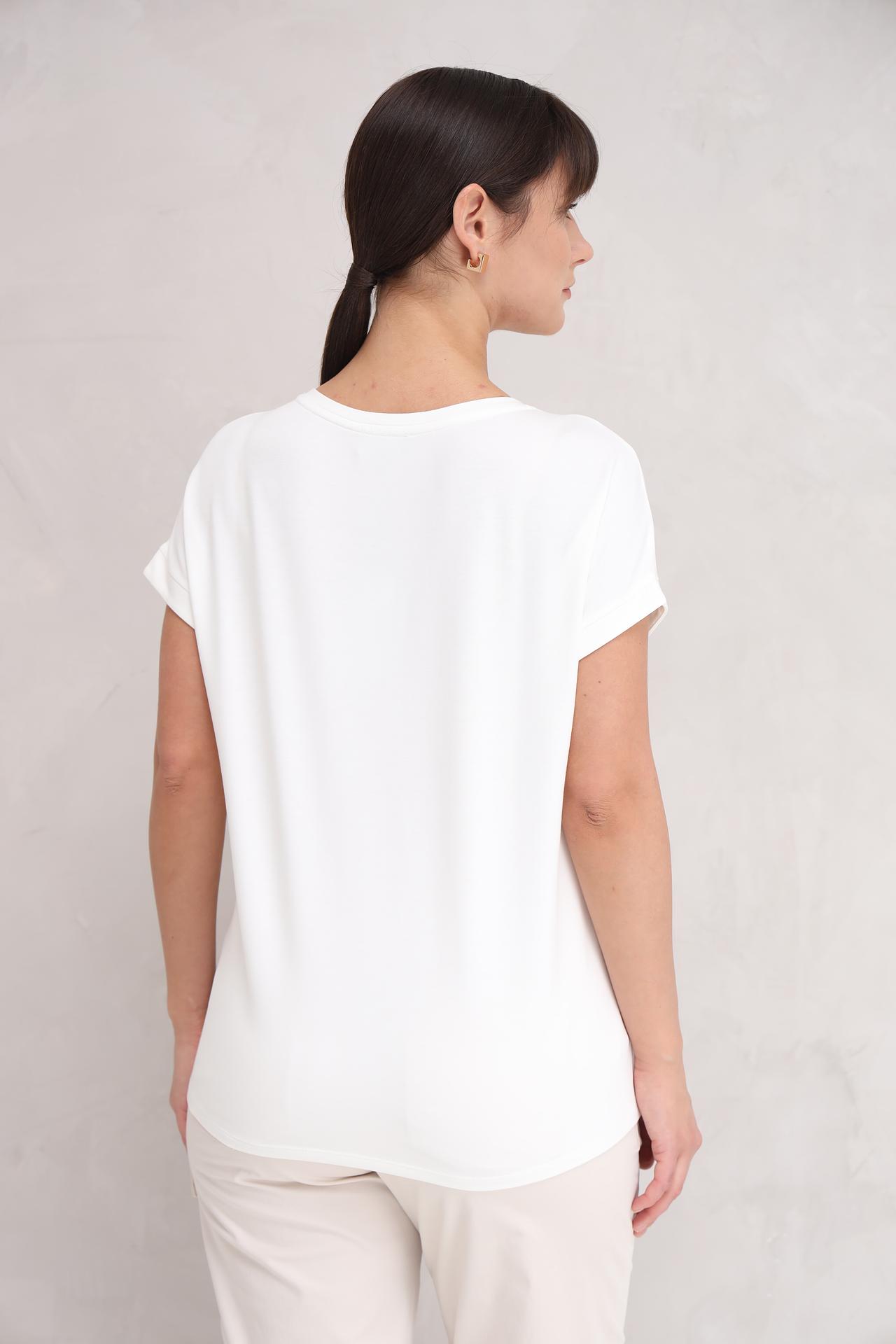 - Универсальность. Белая футболка Monari легко комбинируется с различными элементами гардероба – от джинсов до классических брюк, подходя для создания как повседневных, так и более нарядных летних луков.