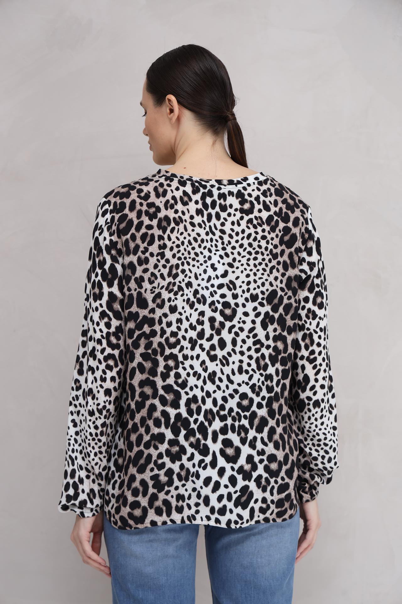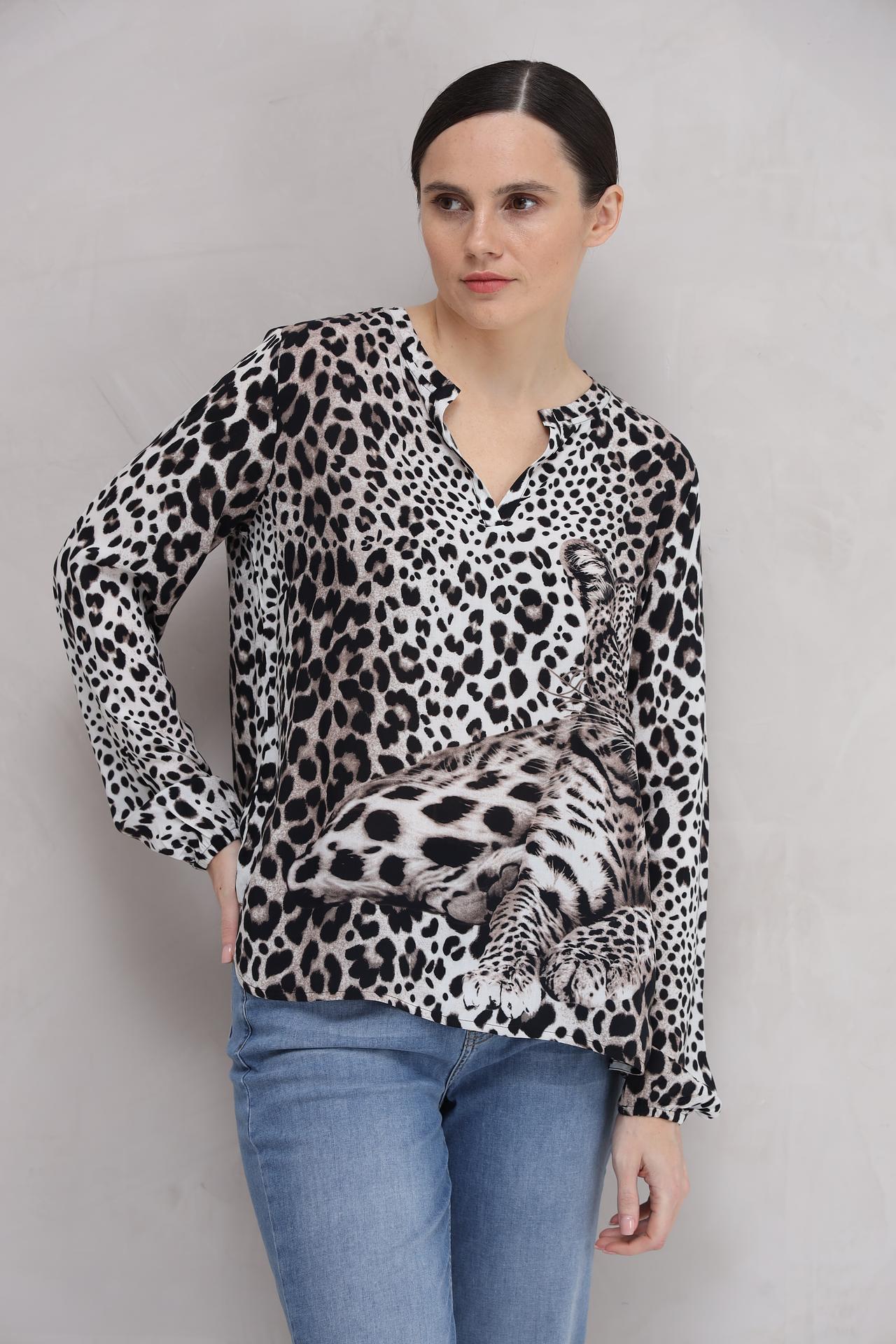 Стильная блуза Monari из 100% вискозы с эффектным леопардовым принтом. Изделие сочетает в себе классический анималистический узор и современное изображение крупного хищника, что делает его выразительным акцентом в гардеробе. Легкий и дышащий материал обеспечивает комфорт в течение всего дня, идеально подходит для создания как повседневных, так и более нарядных образов.
