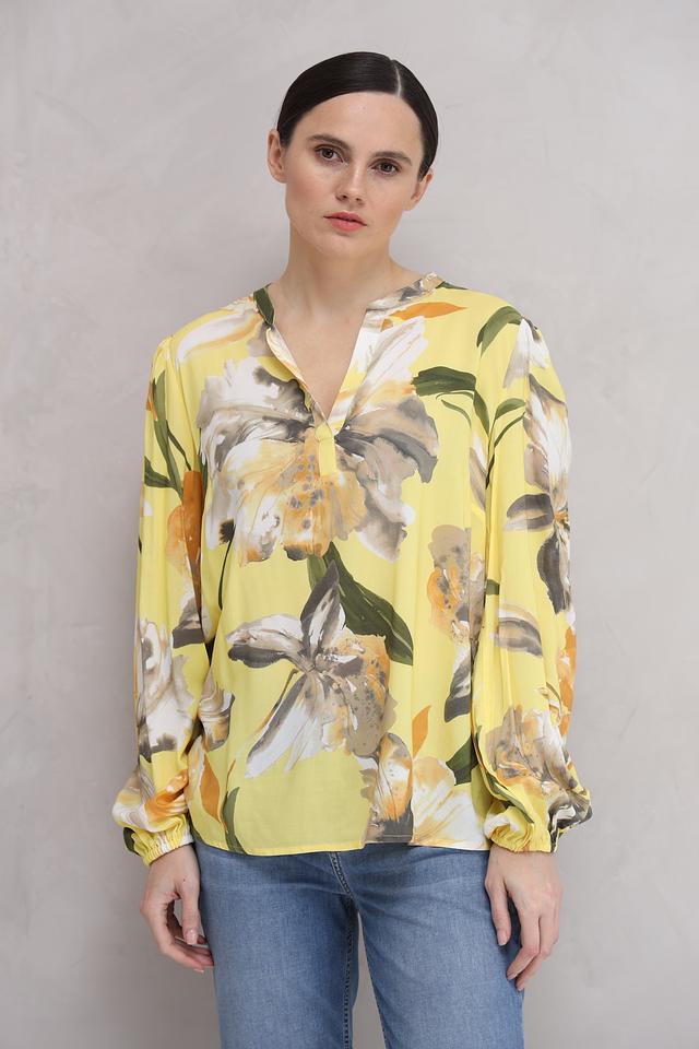 Блуза Monari жёлтого цвета с ярким цветочным принтом станет стильным дополнением вашего гардероба. Модель выполнена из 100% вискозы, что обеспечивает комфорт и лёгкость в носке. Состав: вискоза 100%