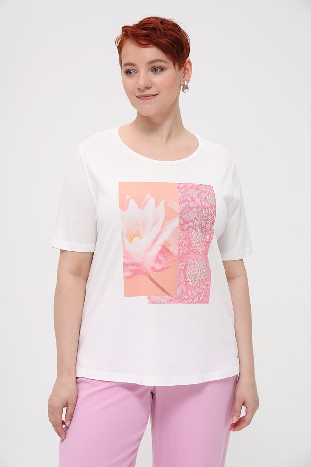 Белая футболка Monari с ярким цветочным принтом станет отличным дополнением к вашему гардеробу. Модель выполнена из мягкого хлопка с модалом, обеспечивающим комфорт в носке. Стильный принт добавит образу свежести и легкости. Состав: хлопок 50%, модал 50%