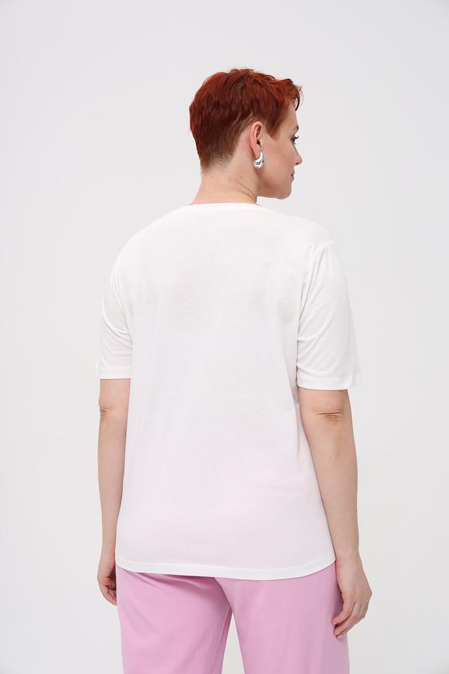Состав ткани – 50% хлопок и 50% модал. Хлопок обеспечивает воздухопроницаемость и мягкость, а модал – приятные тактильные ощущения и устойчивость к деформации. Эта футболка станет незаменимой вещью в вашем гардеробе, сочетаясь с джинсами, брюками или юбками.